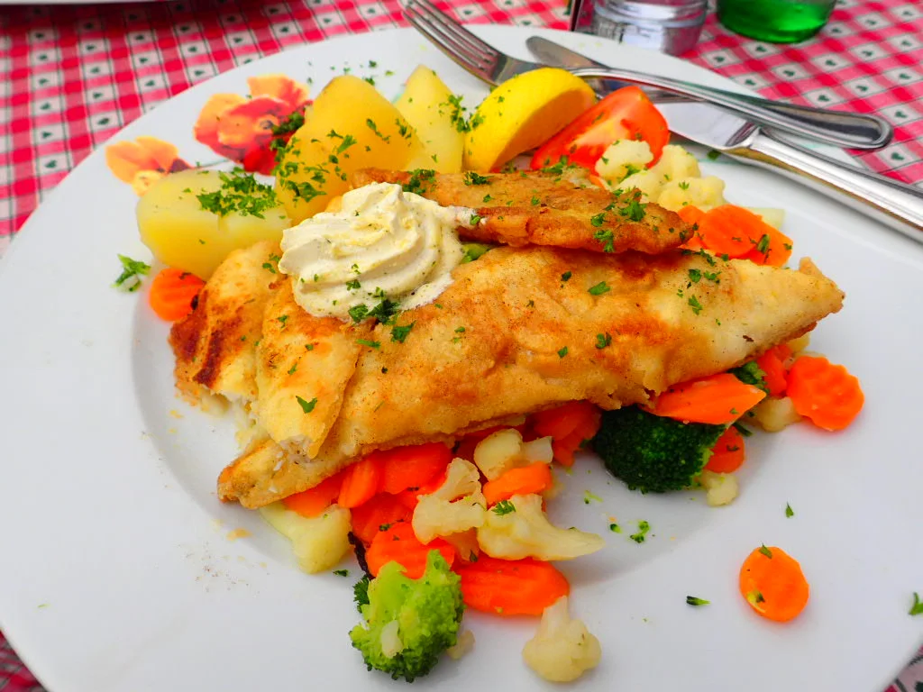 Instead, we took a stroll around the small town, walked the shoreline for a while, and then sat down outside for lunch at Fischerwirt looking out at the gorgeous Alps. I ordered fish caught in the Achensee off the menu and admired the beautiful flowers decorating the side of the restaurant building.