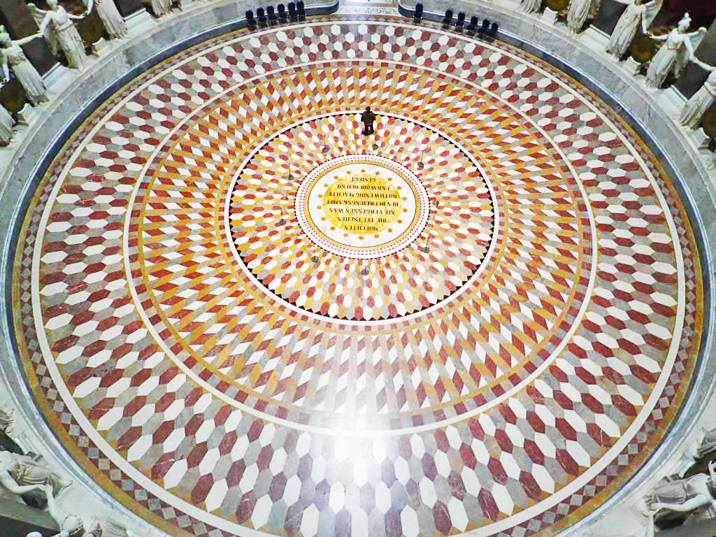 I loved visiting this hall with my cousin Ludwig, his wife, and two daughters. When we reached the top floor of the hall, I was impressed by the pattern designed into the marble floor. The center has an inscription in German which reads: