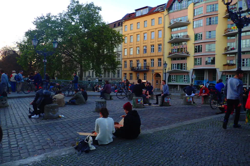 Watching local Berliners pick through other local Berliner’s carefully laid out piles solidified my perspective on the culture of Berlin. The people are artsy, fashionable, and unique in exactly this second-hand sort of way. Recycling and reusing things to create or decorate home, body, or landscape is what people do for fun. It reminded me a bit of Williamsburg in Brooklyn but somehow less cookie cutter and more the crumbs left over in the bottom of the tray. In the most laid-back, nonchalant way possible people scape together what they can to feel good and “be seen” as who they are and that’s just Tuesday (or Sunday, in this case). This was clear to Frank and I when even on a random weeknight in Kreuzberg on a bridge over the canal, we found people chilling out, playing music, and drinking beers as if work tomorrow was more like, “What work tomorrow?”