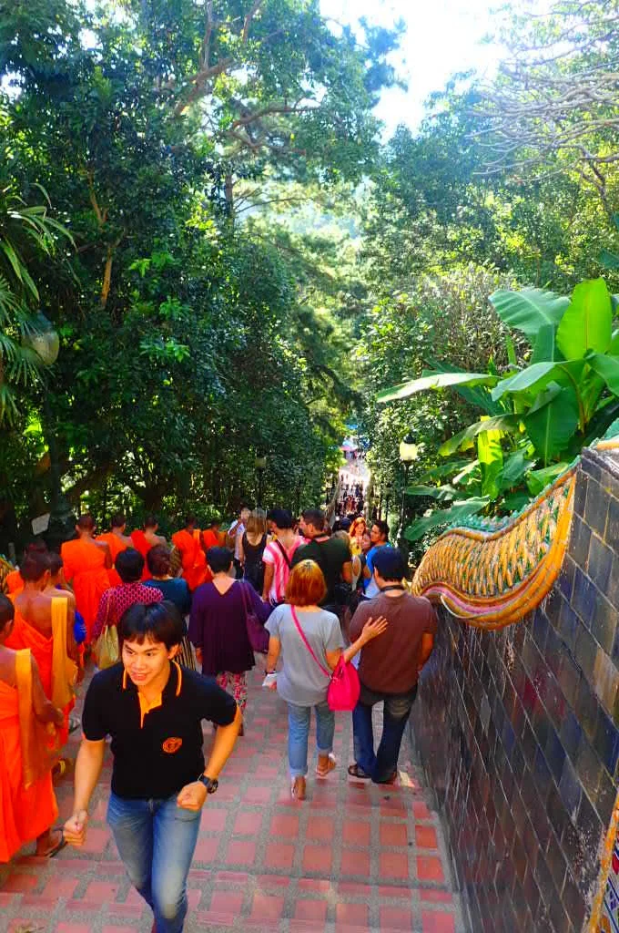 I stayed at the temple for almost 3 hours, observing the people participating in Buddhist traditions. I wandered around the temple enjoying the different monuments, bells, gardens, and clear views of Chiang Mai from the balconies.