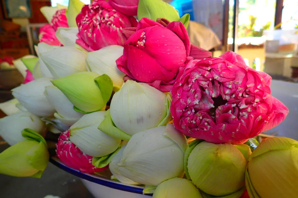 Many people were carrying lotus flowers and doing pradaksina in which they circled the pagoda as a form of worship.