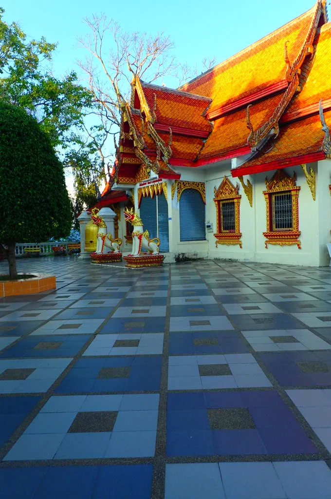 The sunset cast gorgeous golden rays across the temple’s structures and from the balcony there were even better views of the city of Chiang Mai than I had seen on the way up the mountain. The place was peaceful and perfect for quieting my nerves after the long motorbike ride there.