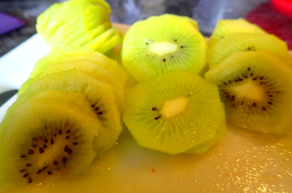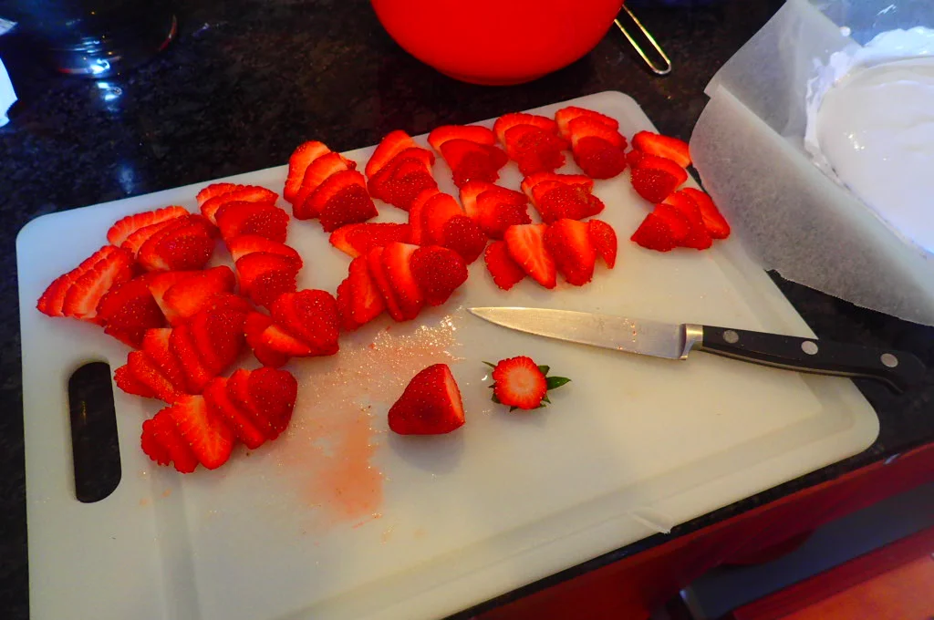 Strawberries, bananas, and blueberries were used in the example recipe. To make this NZ/Aussie dish even more New Zealandy, I decided I had to include kiwi fruit, too! I also felt like the added green made it more festive.