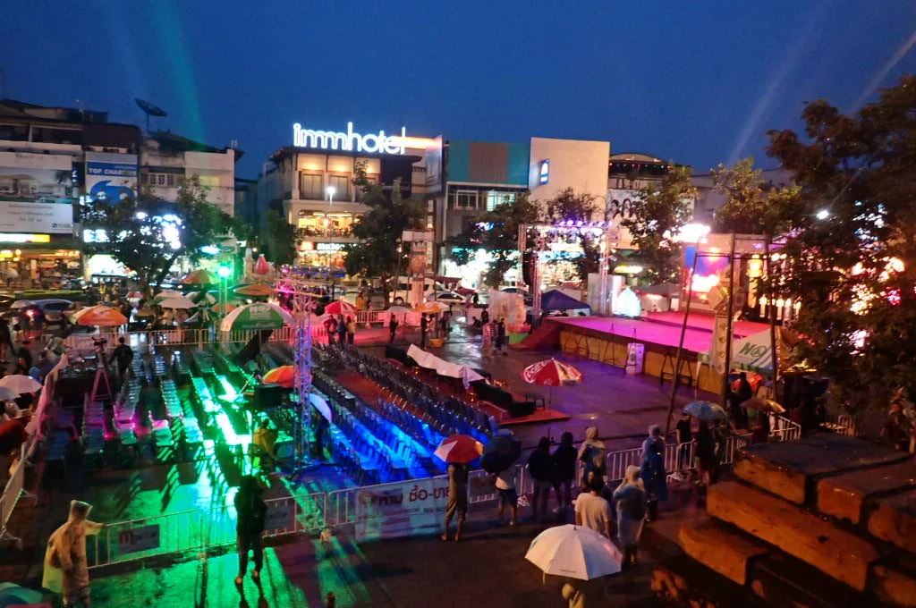 There were festivities going on all week leading up to and the few days after the festivals climax on the night of the full moon. Near the Thapae Gate there were performances and pageants put on by the city with dancers, music, TV cameras, and crowds of onlookers.
