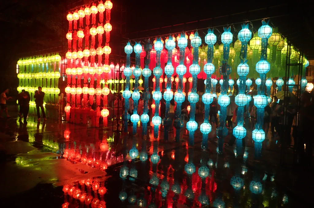 The Three Kings Monument was decorated for weeks surrounding the festivals. On display was an artistic array of colored lanterns. We stopped by there on the way to a bar and had fun taking photos and dancing around in between the lights.