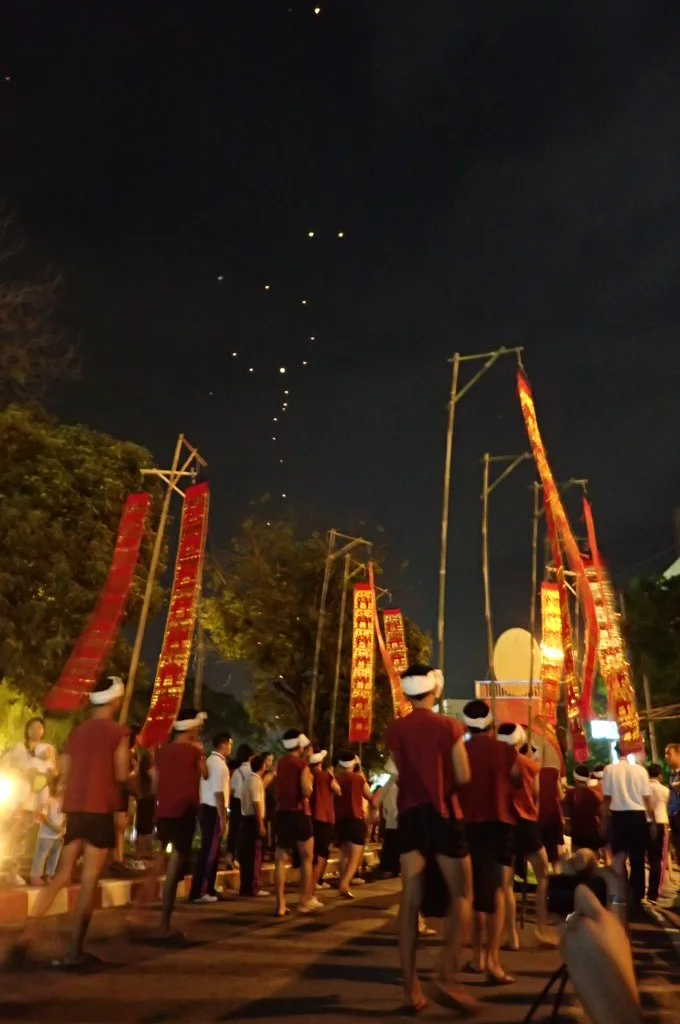After helping others set their lanterns free, we walked our krathong floats down to the river. There, we lit our incense and candles and pushed them out onto the water. Most of the floats caught the current, but some of them got pushed back to the shore. Hilariously, people would start splashing at their float, making tiny waves to help them move further out into the river. All a part of the fun!
