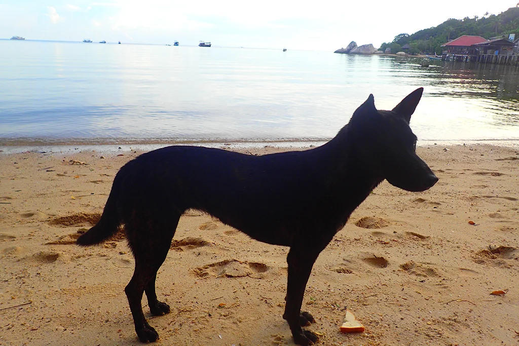 Adorable! We found out his name is Mah and enjoyed playing on the beach with him for a while. Before long, a stray dog joined in the fun and cleverly buried the crust from Mah's sandwich beneath the sand for later.