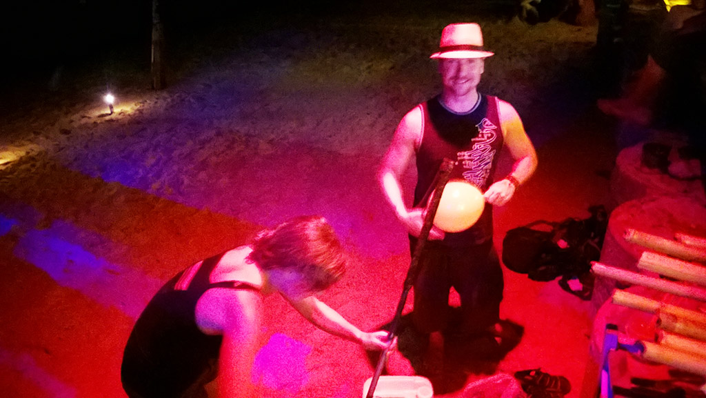 After cake, we walked down the beach to Next Door Bar to partake in their buckets—alcoholic concoctions for which Thailand is infamous. Also fun is their laughing gas balloons for sale. A short-lived, but hilariously good time! ;)