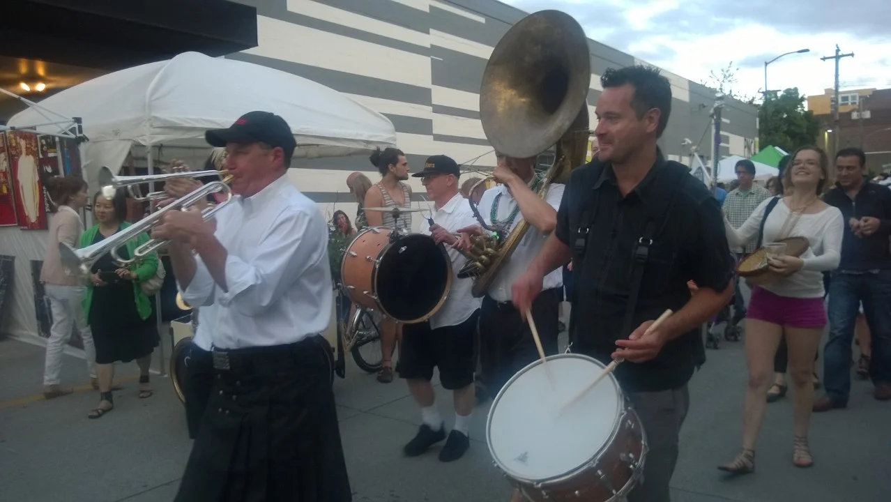 Similar in a lot of ways to Last Thursday (and yet so different) was the First Thursday event. At around 6pm, downtown became bustling with people, food, art, vendors, and music. Wandering into the Pearl district, named for its not-so-attractive building "shells" holding beautiful art galleries within, my friend and I sought out First Thursday by asking a local where to go. He directed us to 13th Ave where we were first greeted by a large band. As they performed, they had dancers as part of their group motivating the crowd to get into it. My friend and I happily joined in the fun.
