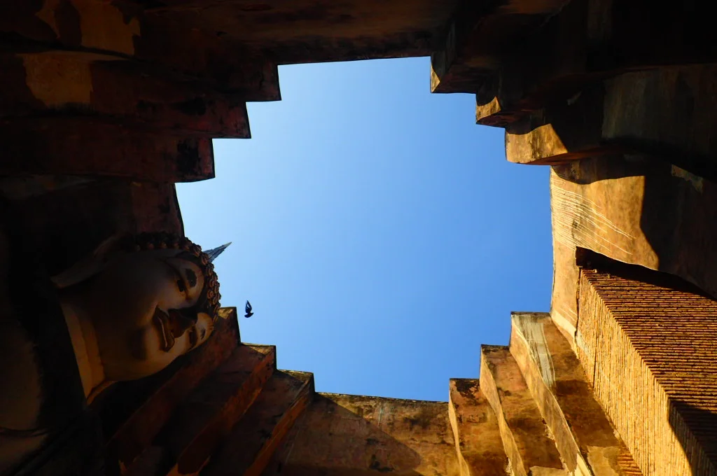 Next was Wat Si Chum where a very famous statue of Buddha sits inside the temple. The Buddha’s golden hand is the big attraction here, but I loved the opening at the top of the temple. The sound of pigeons flapping near the top could be heard echoing around the walls of the chamber.