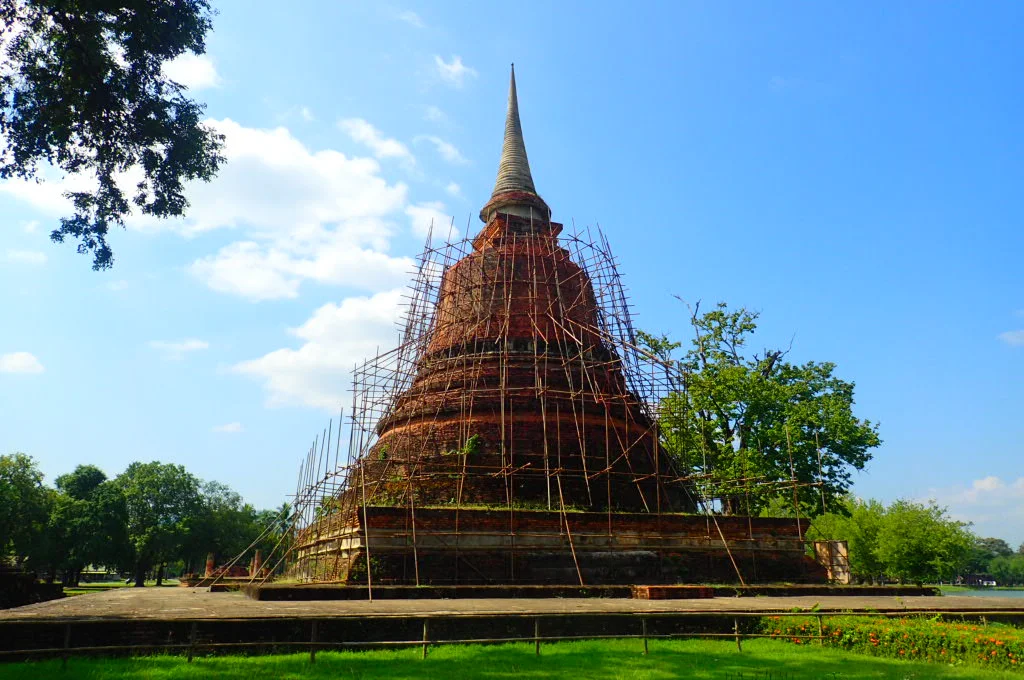 Construction was going on all over the site. The Thai Fine Arts Department oversees Sukhothai’s maintenance and employs Thai people to use traditional methods and materials to make the repairs and restorations. Soon, there will be even more parts of the site to visit in the form and style they would have been hundreds of years ago.