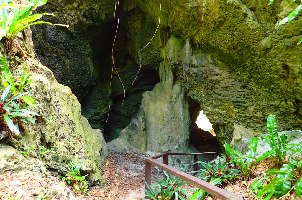 Avaiki cave is actually a cave you can walk through down to some reef flats that wrap around the west shore. This cave, with a stairway marking the path down through it, is pretty spectacular on its own.