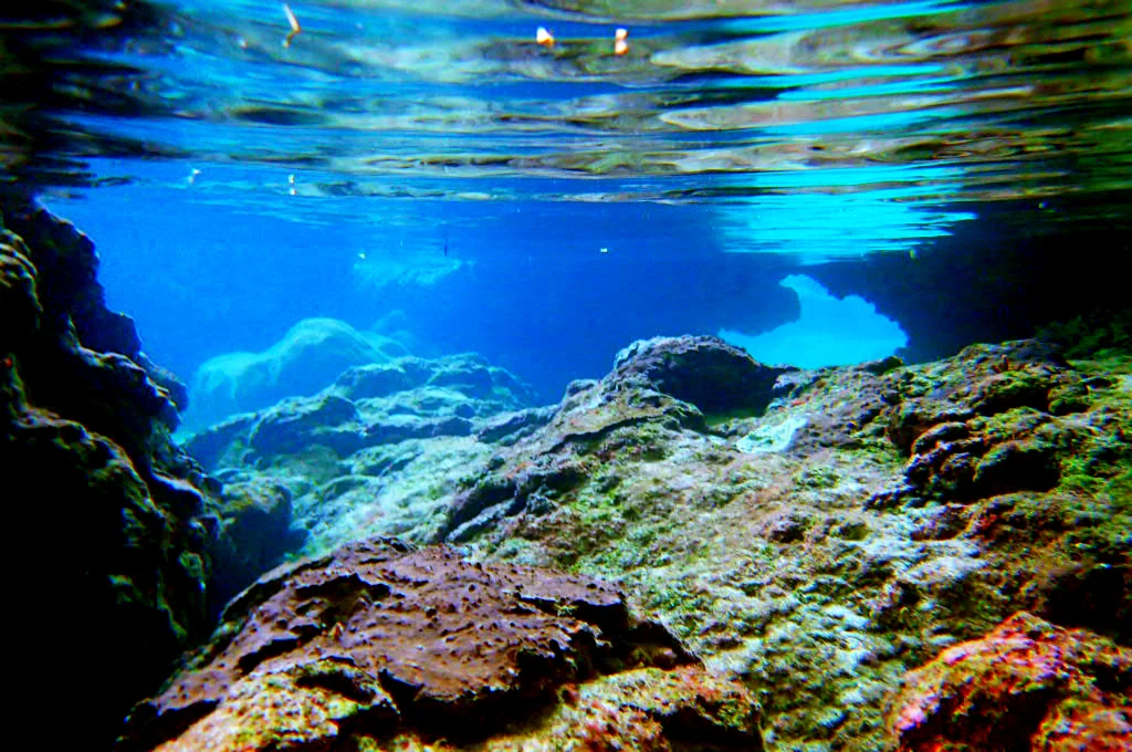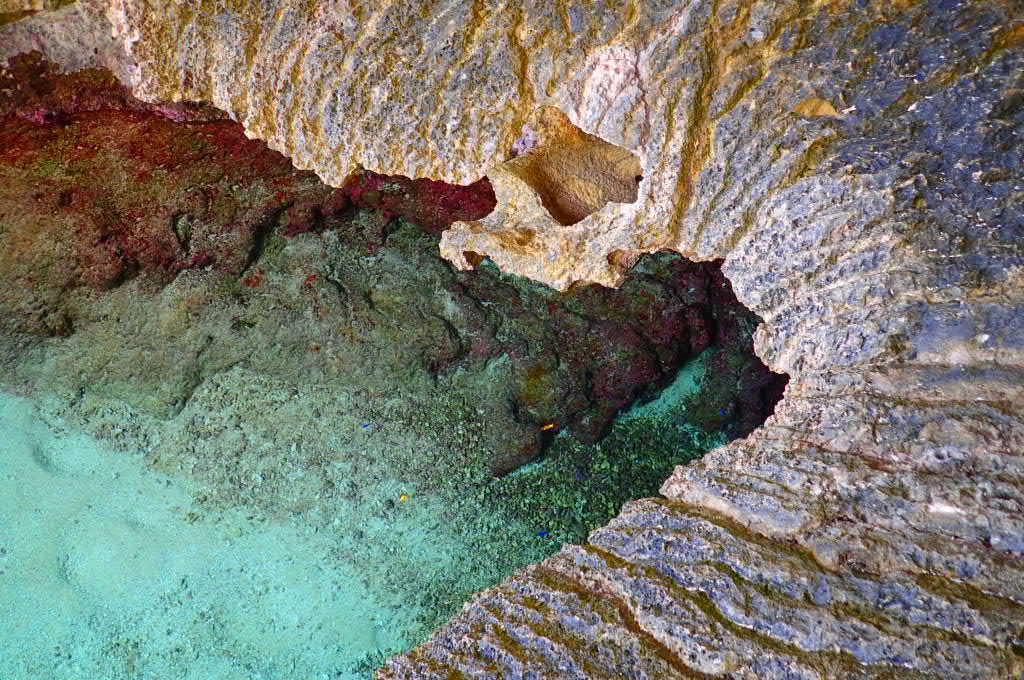 Beyond the archway was a channel leading through the reef and beyond to the deep blue ocean. Very carefully, we swam through it and out to get a glimpse at the surrounding ocean’s visibility.