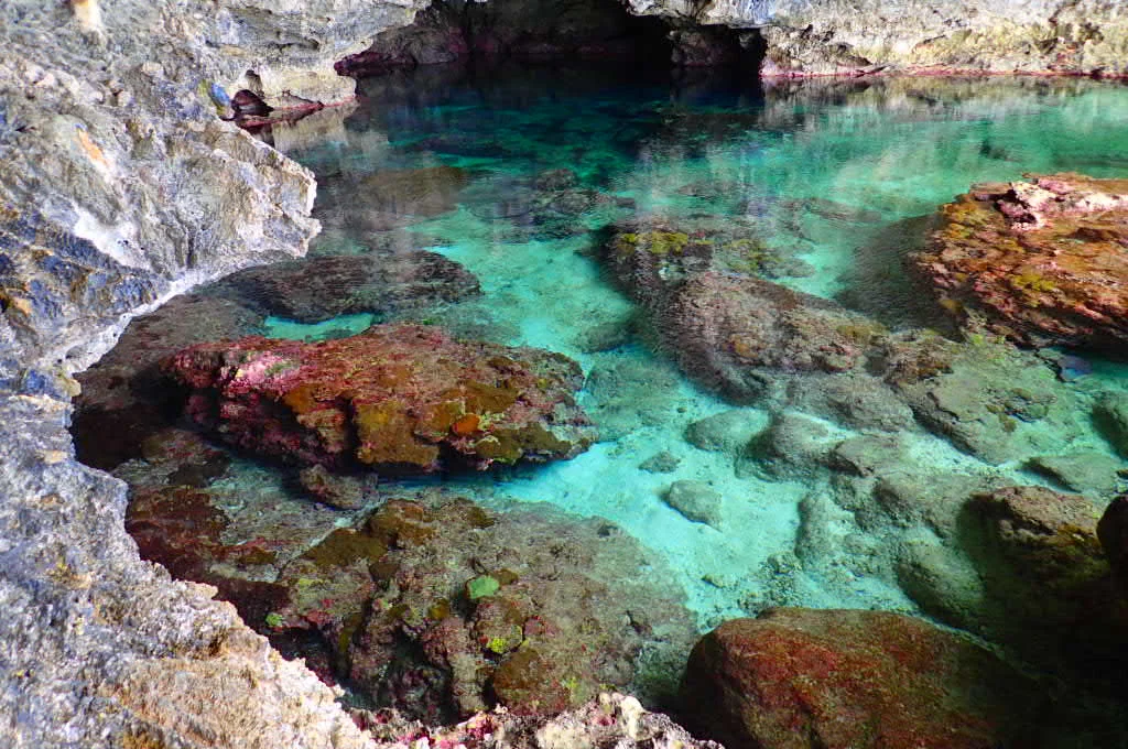 Many of the pools and chasms around Niue have fresh water in them. This is rain water filtered through the limestone rock. Luckily, this filtration system keeps the surrounding waters free from dirty runoff and debris, but it does have a sort of blurry effect.