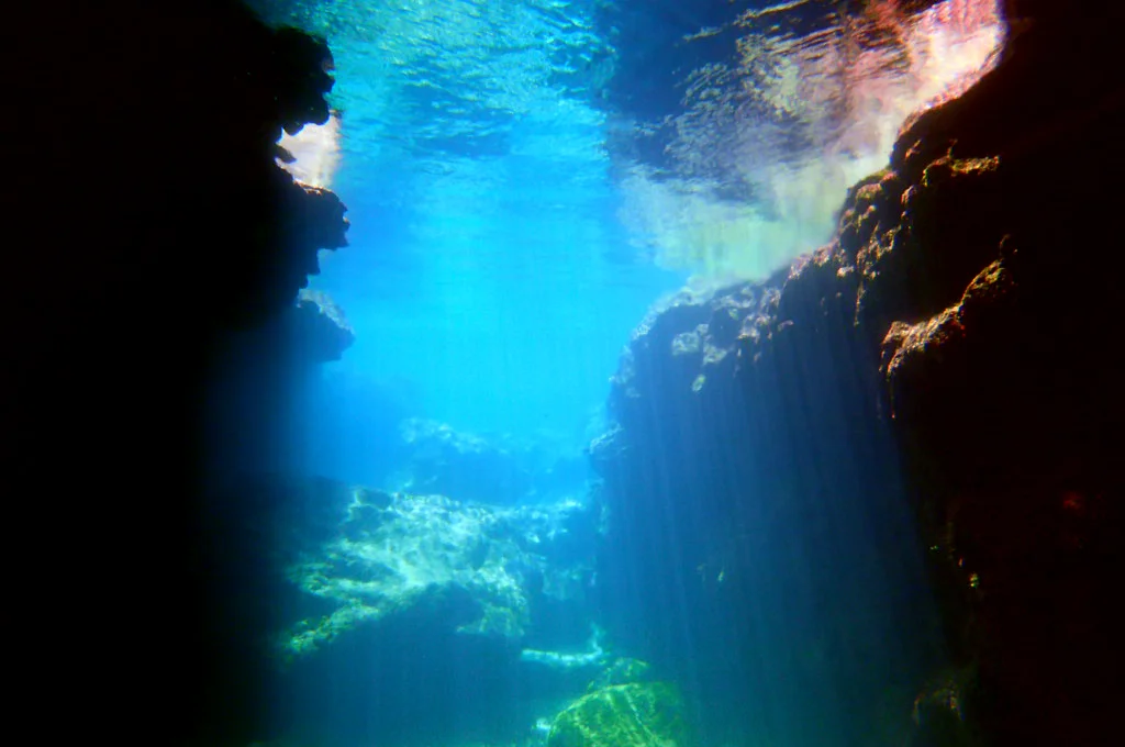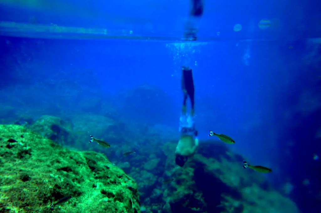 By swimming a bit further out into the chasm, the water clears up even at the surface.
