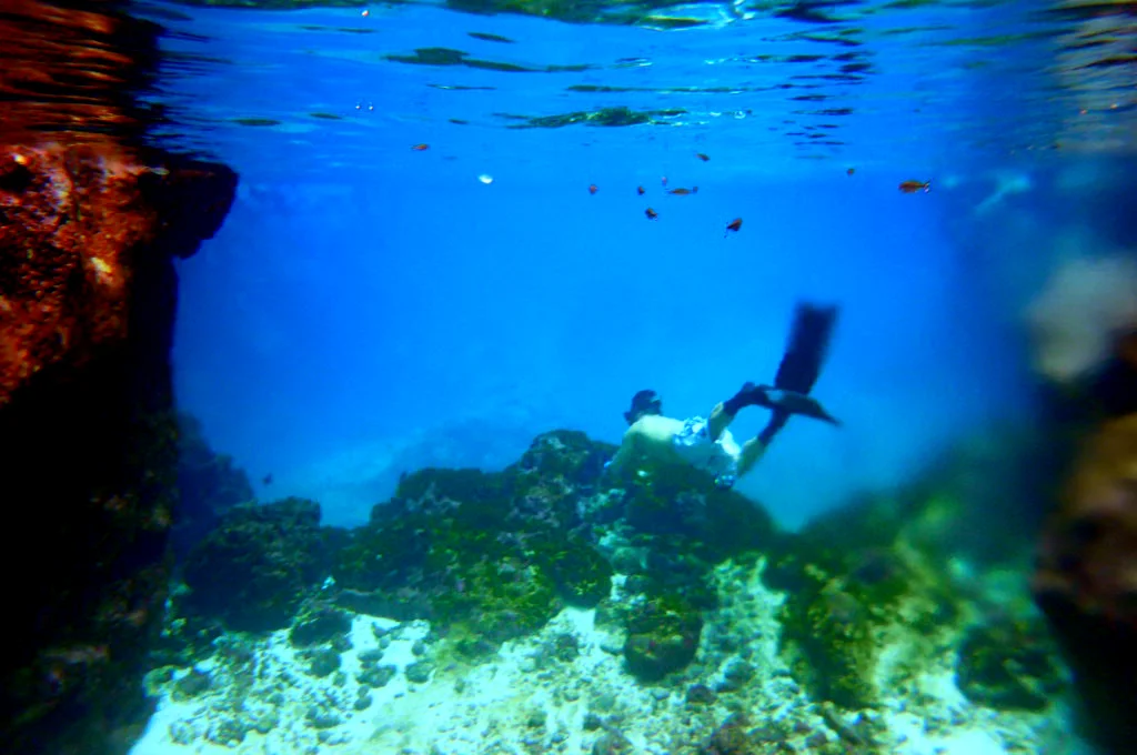I wouldn’t recommend swimming out into the ocean beyond the coral wall if you’re not a skilled swimmer. If it weren’t for Jono, who is an experienced free diver, by my side I would not have gone, as there was a very strong current getting back into the pools through the break in the wall.