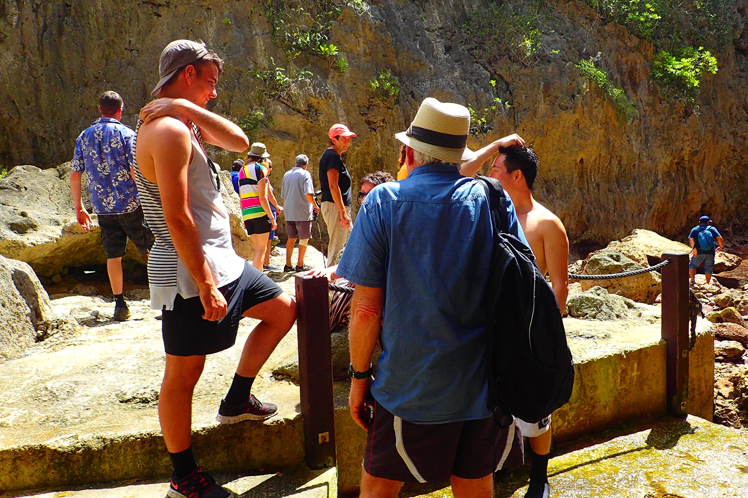 As soon as they started jumping and we started removing our fins, a small tour group arrived. The arrival of so many people to one location like this is actually an extremely unusual occurrence on Niue. There’s really a minimal chance you’ll bump into huge groups of tourists on the island. Even rarer are the lone one or two travelers wandering around.