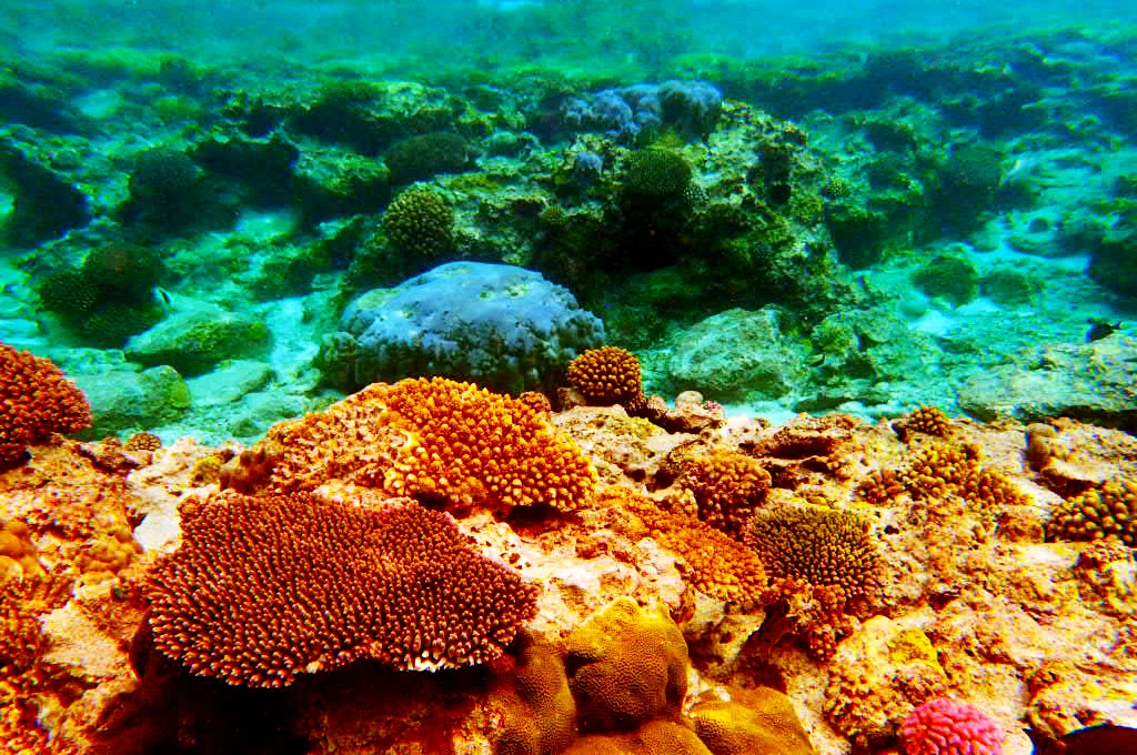 Parts of the area are quite deep (10m). The water is so clear, however, the depth does not matter at all. It’s a great snorkeling location with lots of large coral walls with deep crevices and channels to explore.