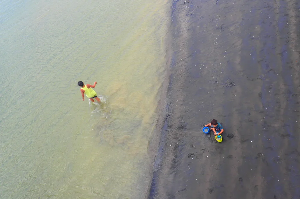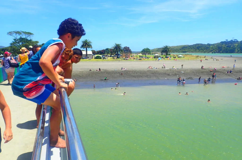 We spent half the day lounging at the beach. The beach was on an inlet blocking the rough waves of the ocean around the corner. The water was calmer here, but still cold. New Zealand’s oceans and waterways are typically cold, but people didn’t care on this hot, sunny summer day. People were enjoying the first day of 2015, playing on the playground, riding in the skate park, digging in the sand, cooking food on public barbeques, and jumping off the bridge into the canal.
