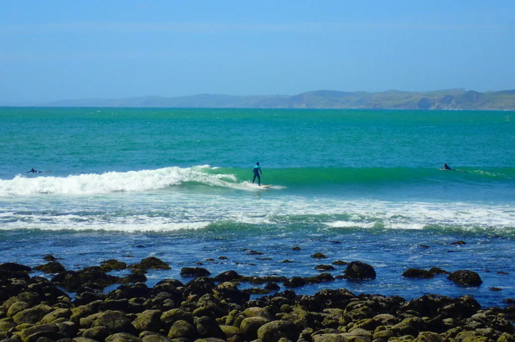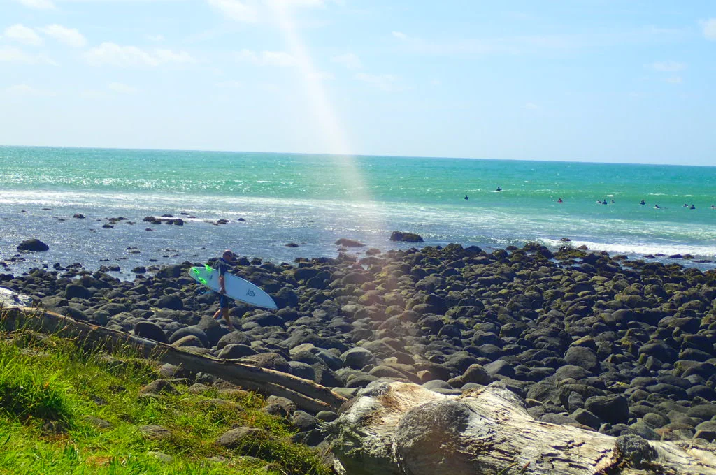 I had missed it on my previous two road trips around the North Island, but I heard it was a laid-back hippie town where surfers and skaters like to hang. We were just hoping the weather would hold out enough to camp, enjoy fireworks, and swim at the beach.