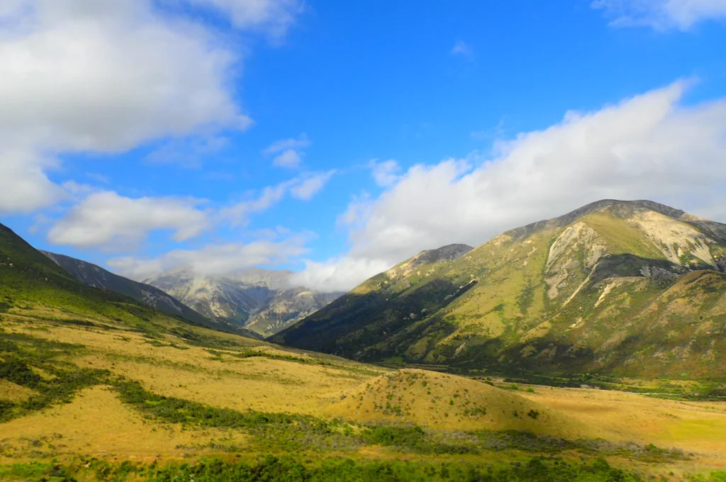 The ride from the pie shop to our first destination wove up a mountain side overlooking a valley next to Korowai-Torlesse Tussocklands Park. The view was our first taste of the dramatic Southern Alps we were going to witness over the next two days.