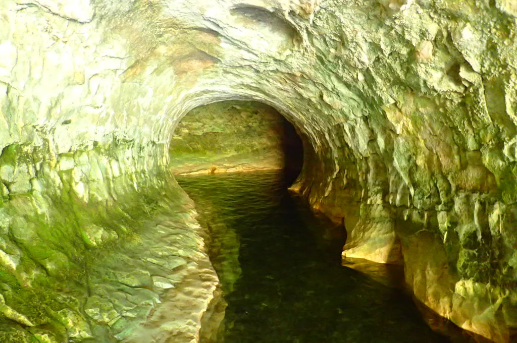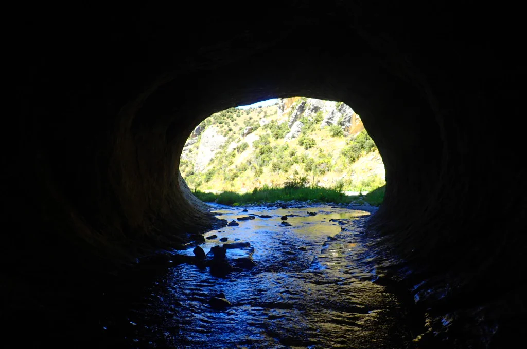 We passed by Castle Hill—we’d head there later—and went straight to the Cave Stream Scenic Reserve. A small car park in the middle of an open field looked like nothing much. But a short walk down the hill took us to the mouth of an enormous limestone cave.