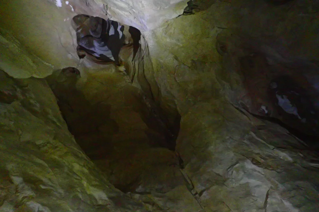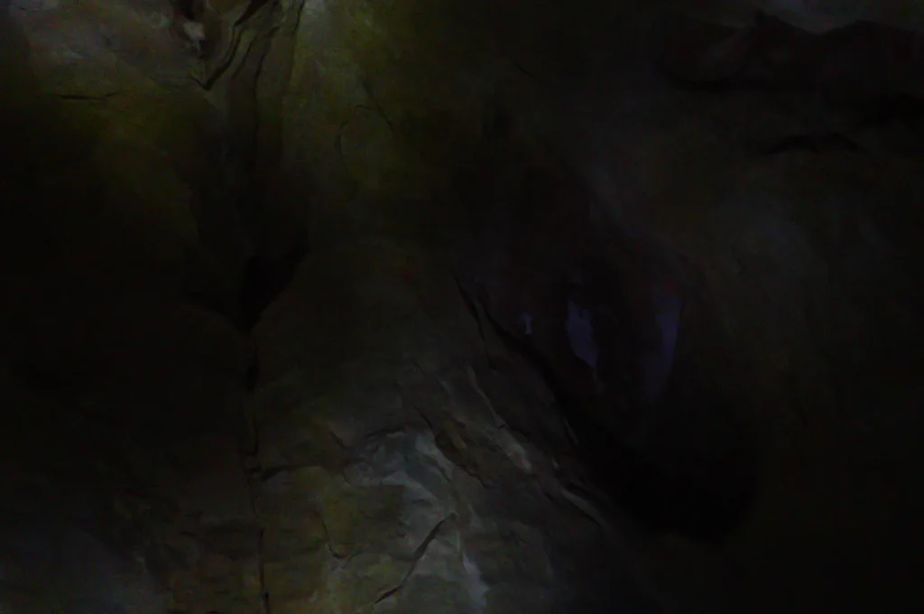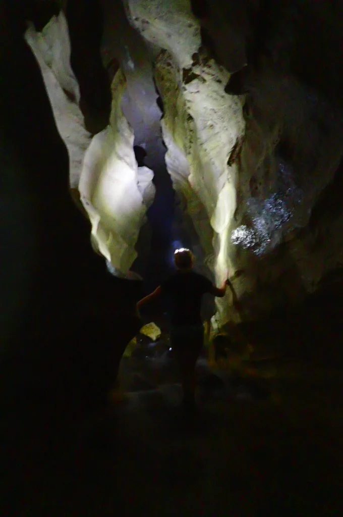 We could explore off-shoots from the main tunnel. At one point, we heard people coming up behind us in the cave. Carolina and I huddled inside one of the holes in the wall until they came by and—“RAAAHHHH!!!” We jumped out and scared their headlamps out. Well, no, their headlamps didn’t go out, but that’s what would have happened if this was a cartoon. The couple we had scared had a good laugh with us over it and then continued on ahead.