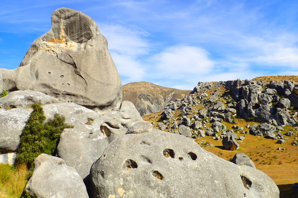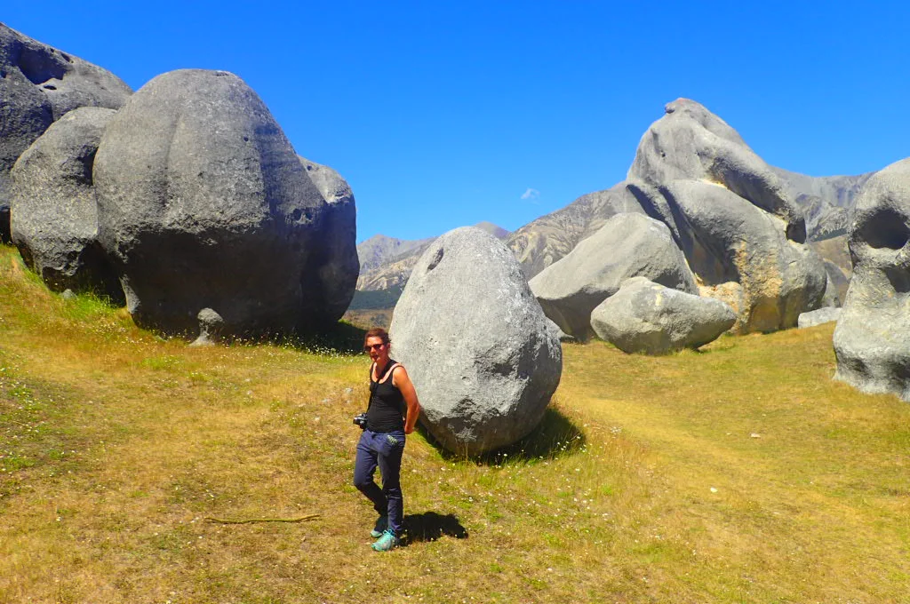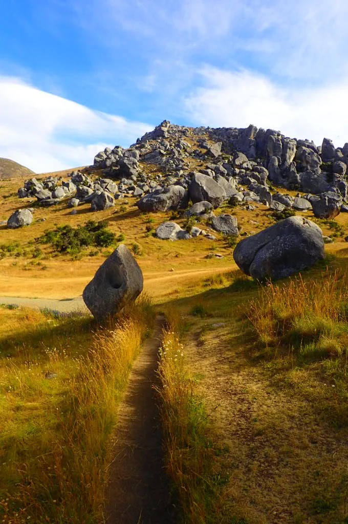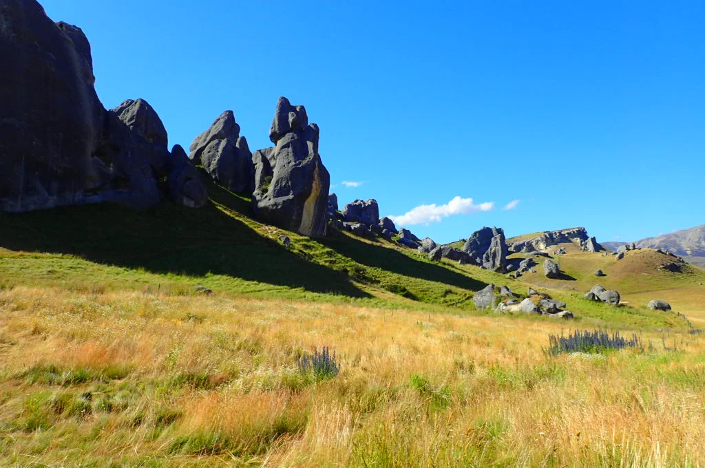 We backtracked down Rte 73 about 1 km to continuing drying off at one of my favorite locations in the South Island—Castle Hill. Castle Hill is just a short walk up from the road. The area is covered with hundreds of enormous limestone boulders dispersed all over the place. It happens to be one of the film locations for Narnia: The Lion, the Witch, and the Wardrobe.