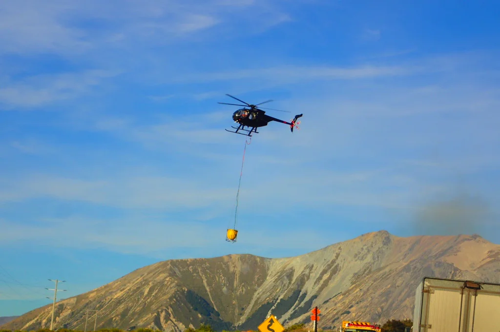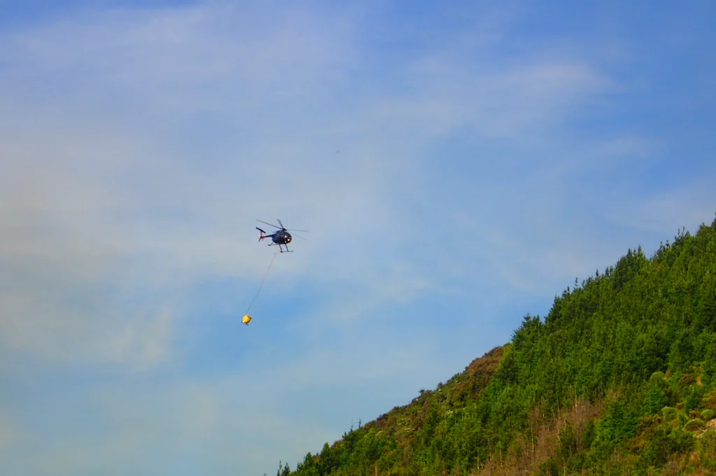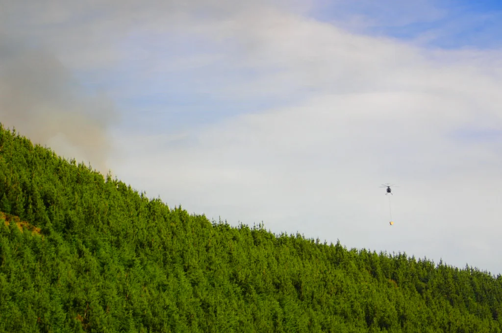 Helicopters were taking water from the lakes to put out the fires. It was exciting getting to see them up so close.