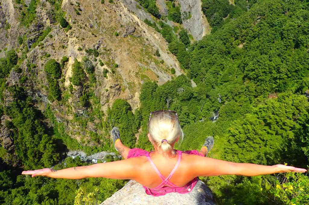 Carolina is a bit of a daredevil when it comes to ledges of cliffs. You can get a good idea of our altitude and the steep drop from this shot.