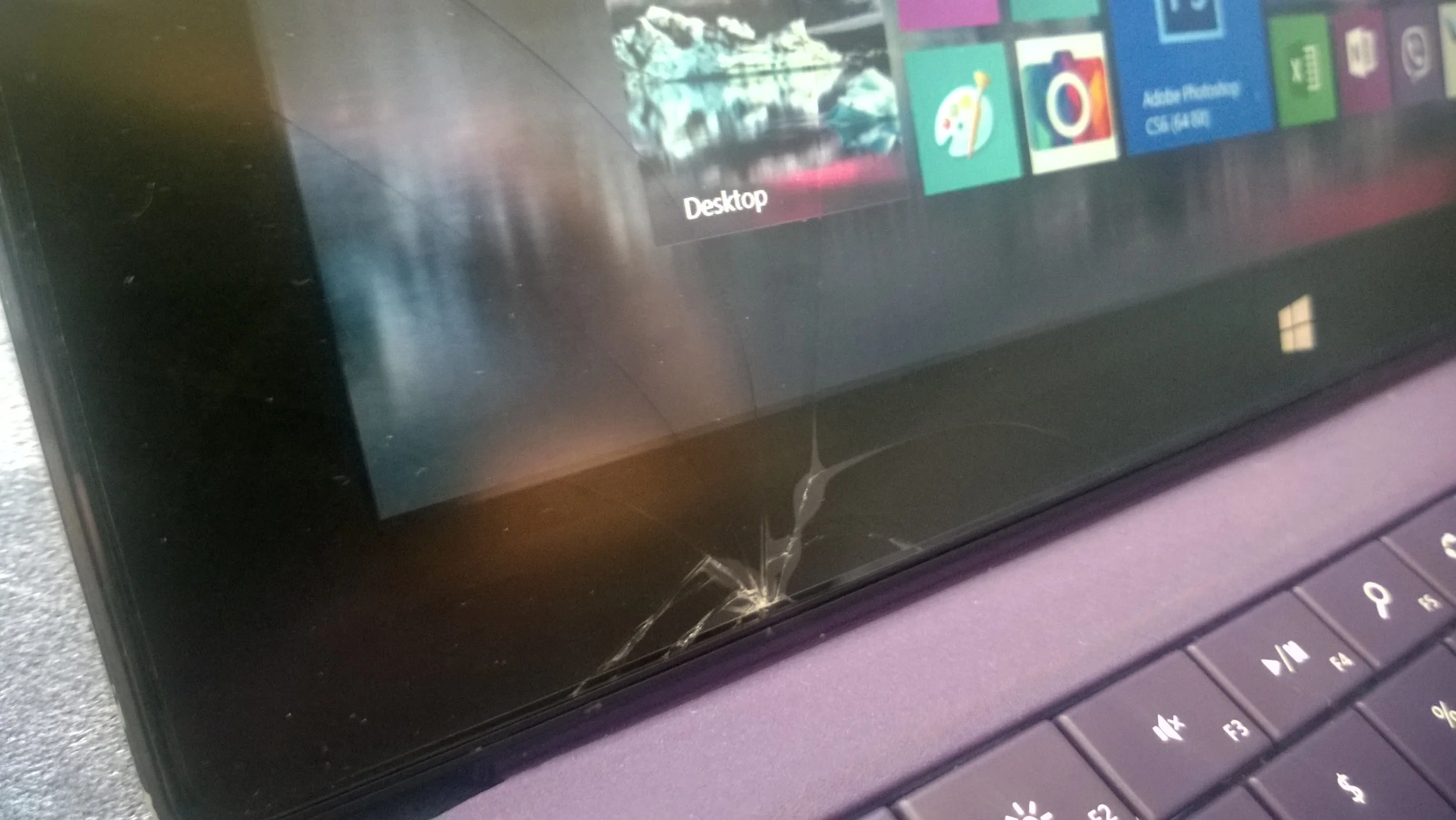 My Surface, on the other hand, is broken but still usable. I was writing up a blog post sitting on a park bench when it fell off my lap and crashed down onto the sidewalk below. You know the feeling when you go to pick up your device off the ground and turn it over hardly wanting to look? My heart sank when I saw it. Only the corner is cracked and the touch screen doesn’t respond to my finger as well anymore. The stylus pen still works, so it’s manageable until I go home and have the device replaced. Luckily, I have it covered under accident insurance through 2016.