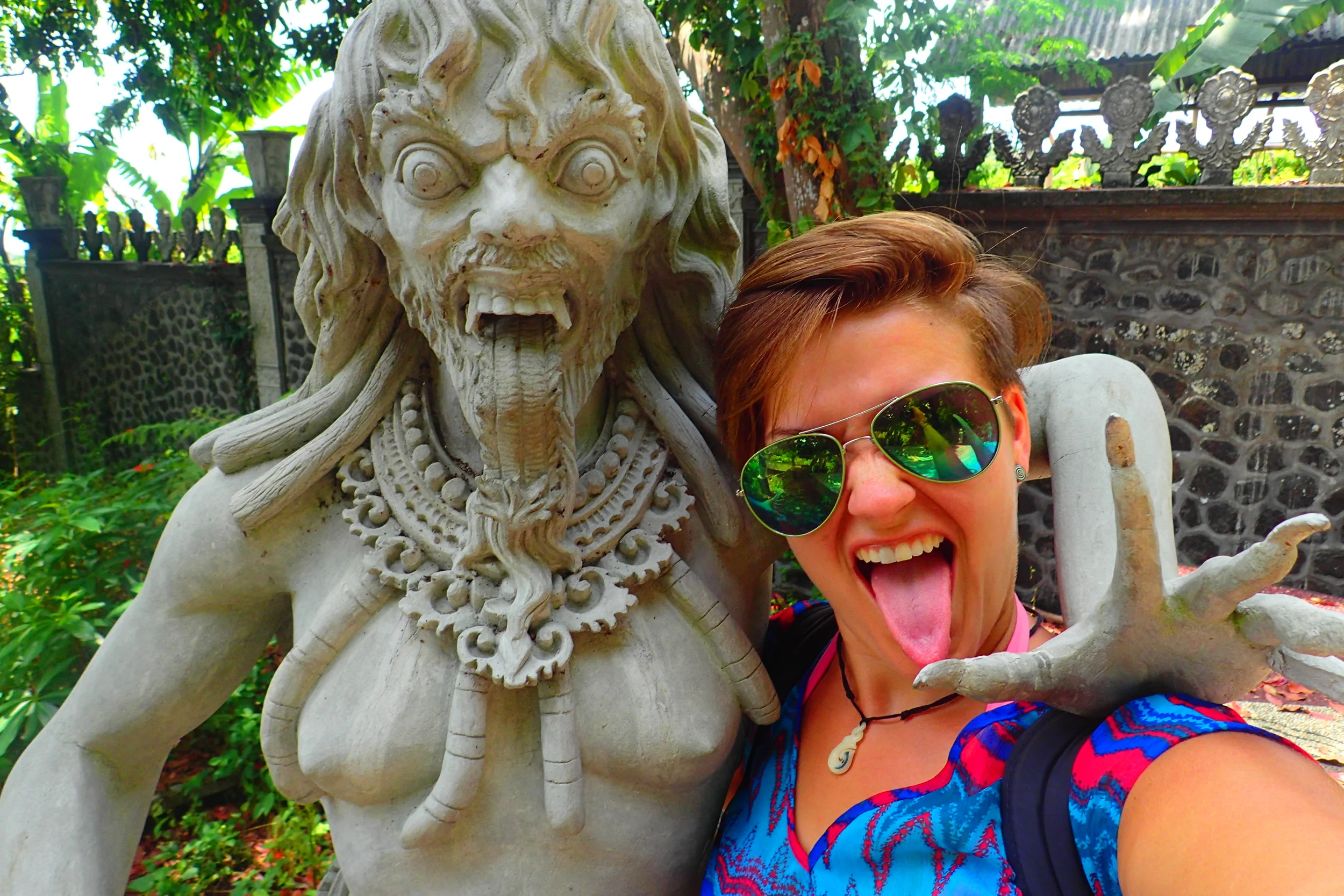 I thought these statues, in particular Bhuta and the demon hybrids, were fascinating! As a solo traveler, I had to get a selfie with the Bhuta-Woman hybrid—my favorite of them all and clearly my best pal.
