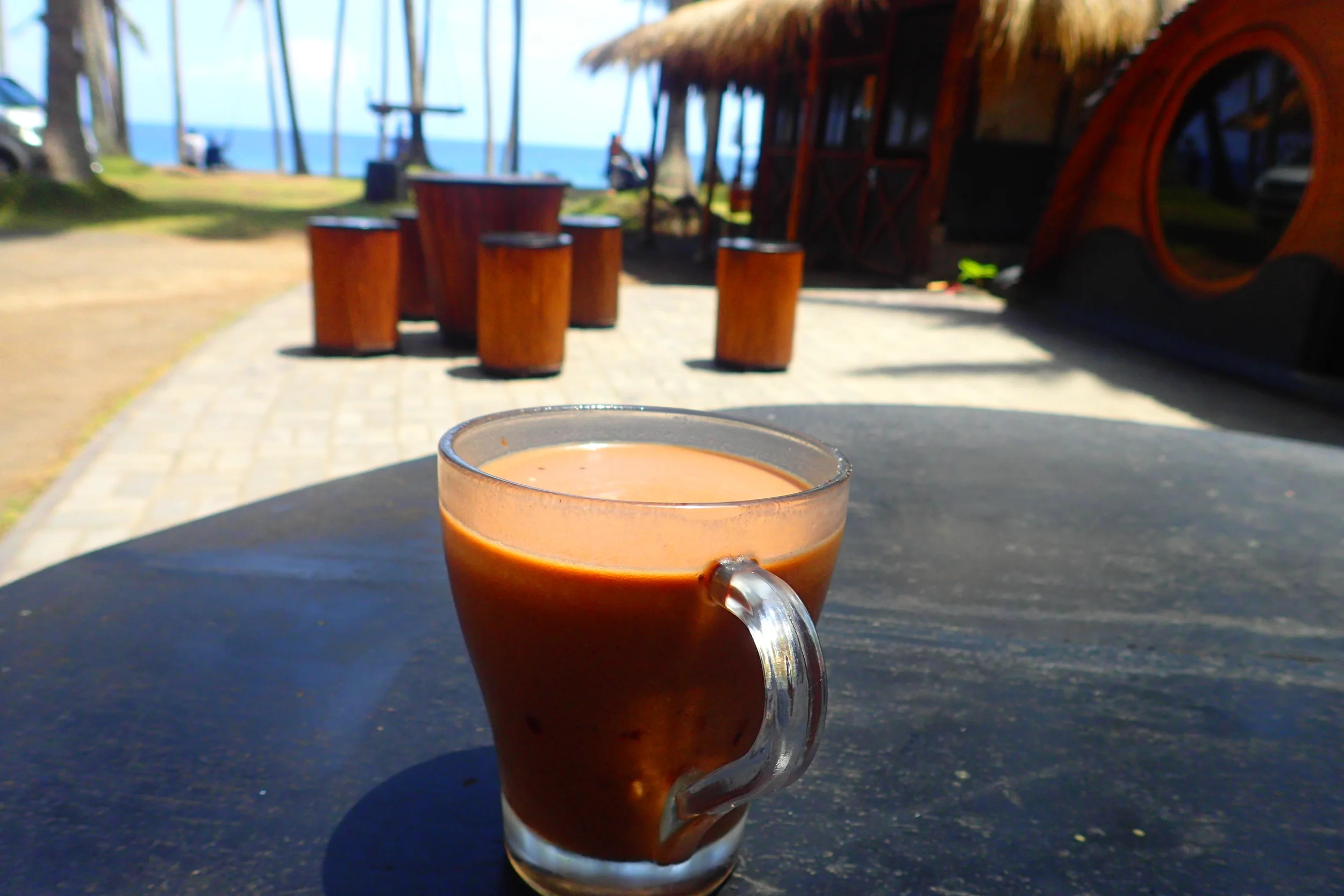 An American expat, aptly named Charly, set up a chocolate factory here. Charly had started out making soap and eventually used local cacao to make homemade chocolate products. I was led inside one of the huts by a local under Charly's employment. He gave me a chocolate tasting and then I purchased a chocolaty drink to sip outside on polished stumps.