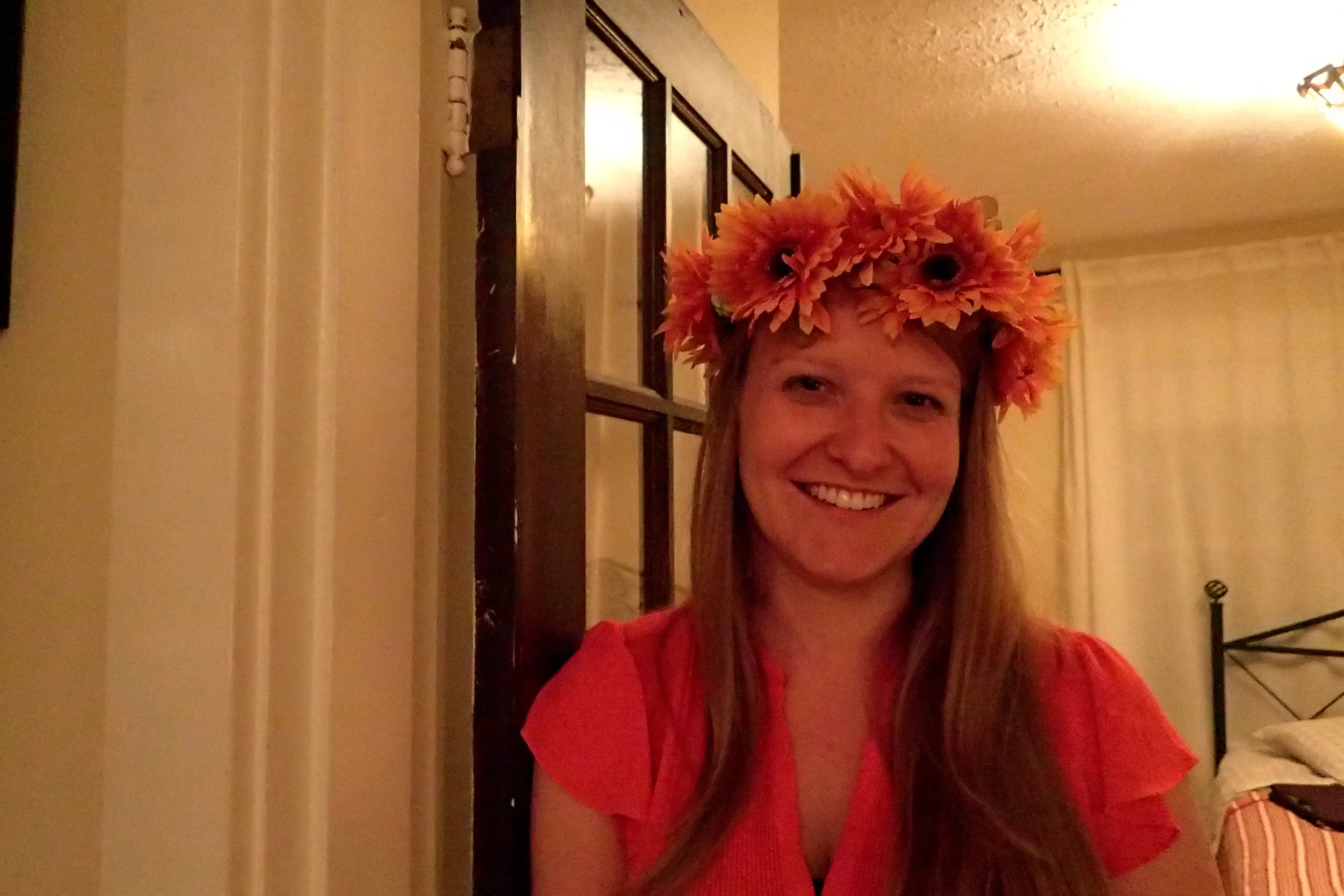 Standing in our Airbnb before going out, Dasha has no idea about the surprise that awaited her!