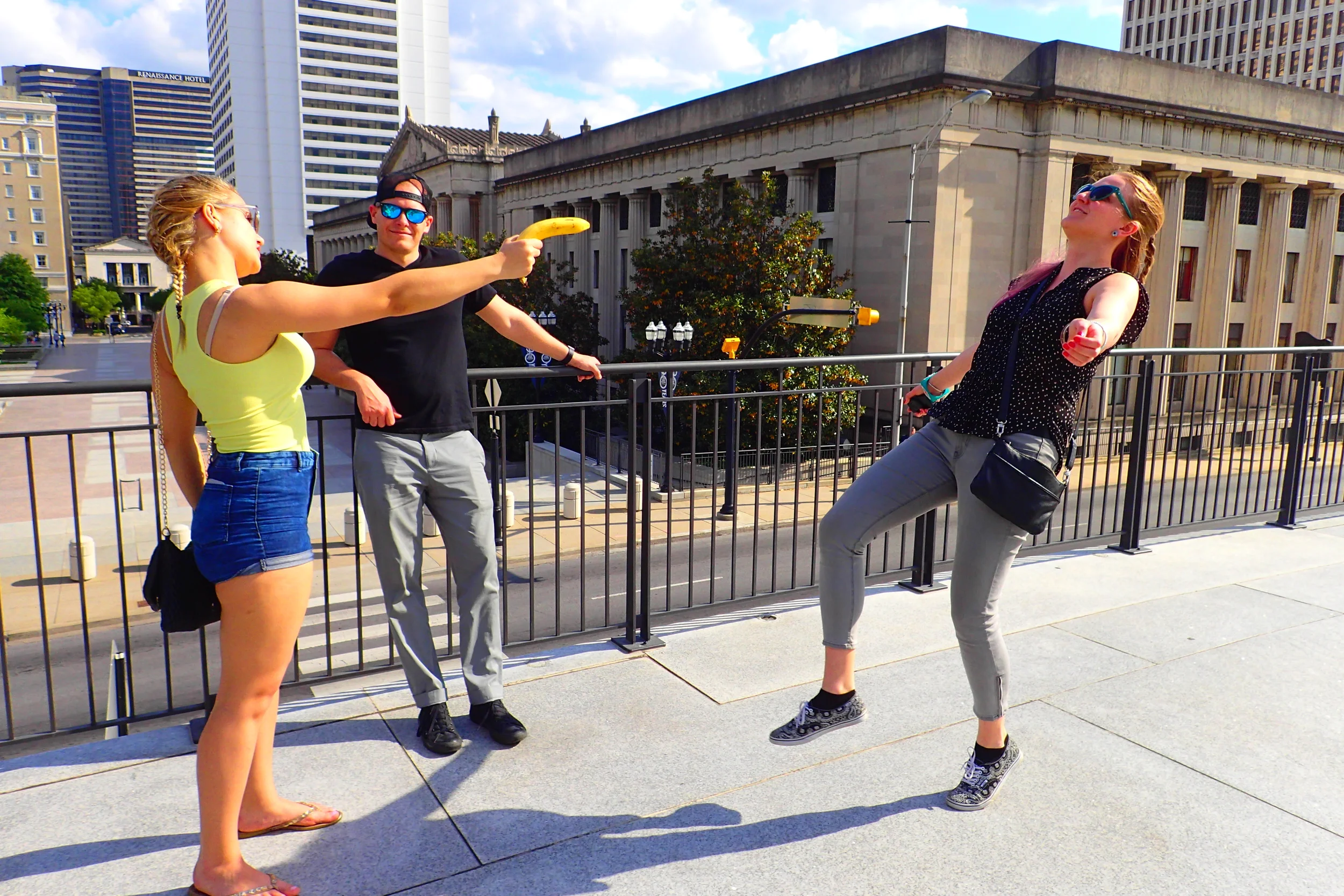 Savva, Stef, and Dasha messing around at the capitol in Nashville
