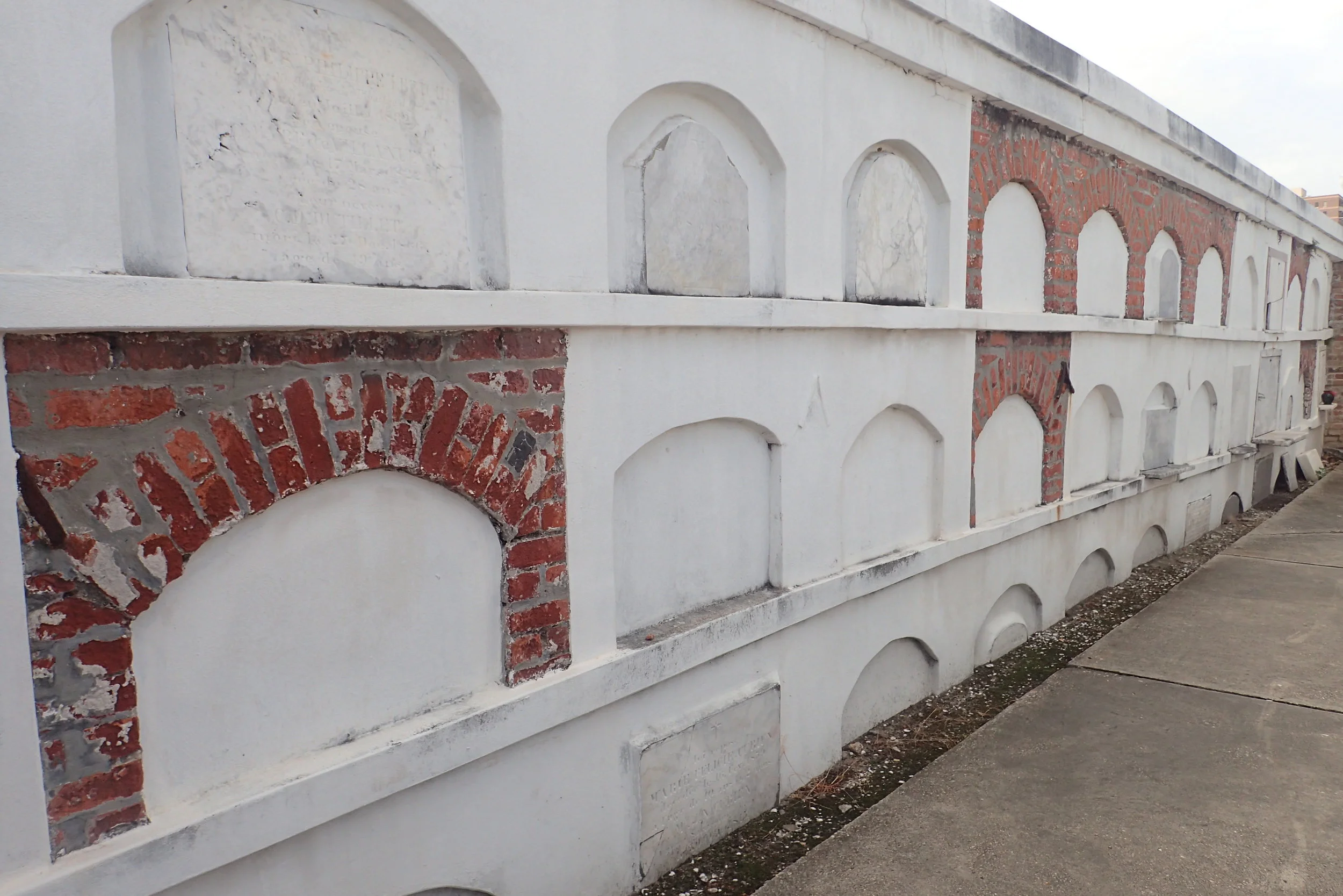 When the walls of the cemetery were constructed, they were 3-interments tall. Now they're about 2.5 interments tall in places. The very bottom level is becoming naturally buried.