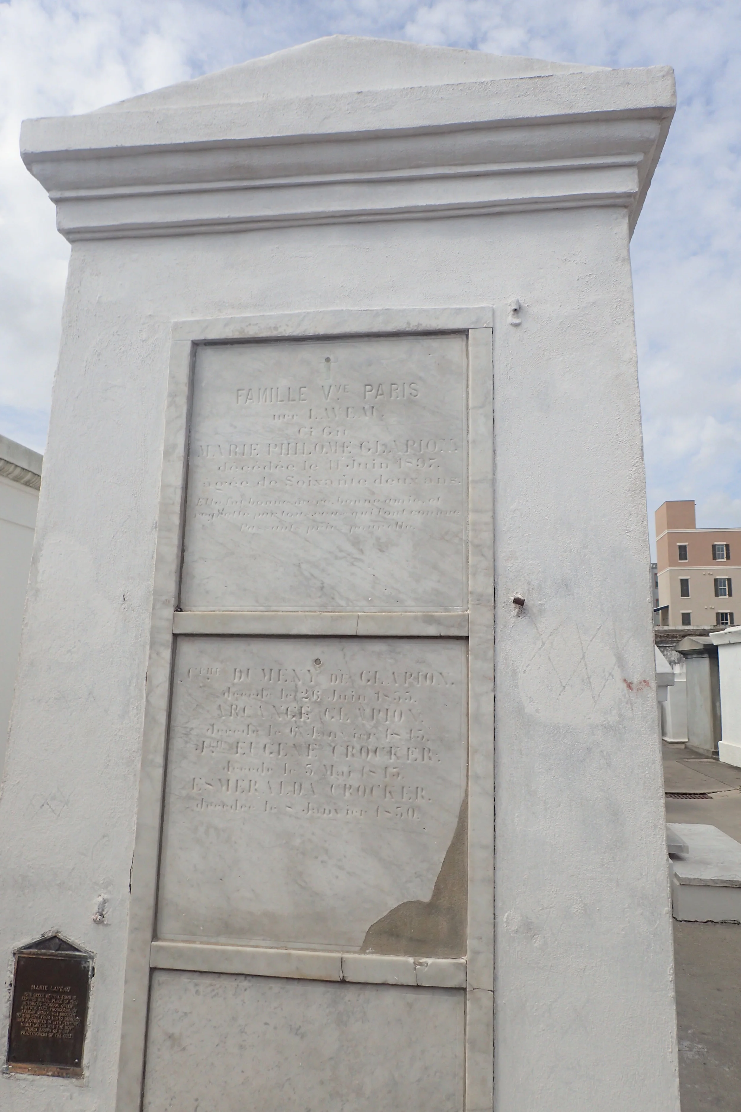 Marie Laveau was buried in her husband's family tomb pictured on the left below. The tomb pictures on the right is a different tomb that people often mistake for Marie Laveau's tomb.