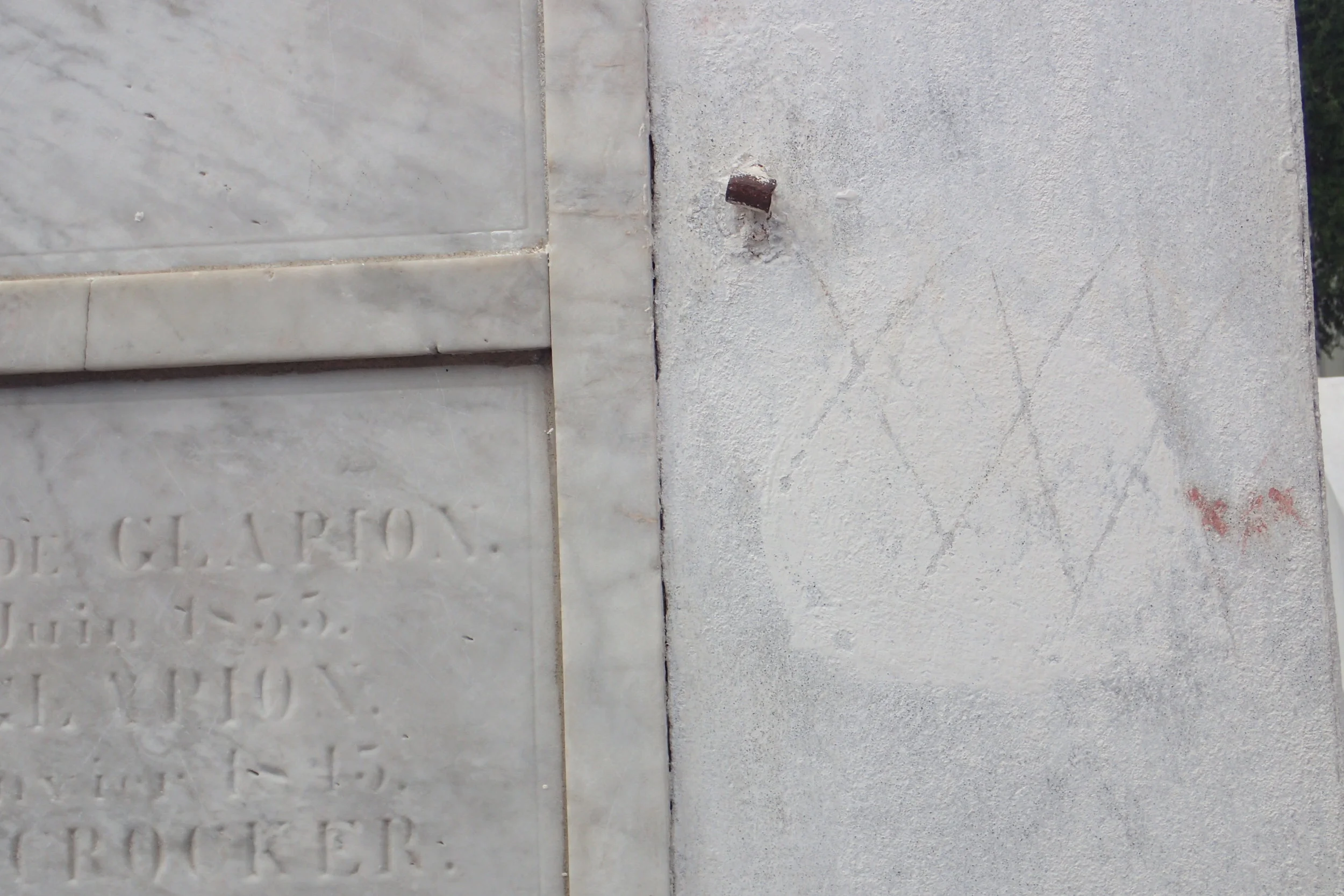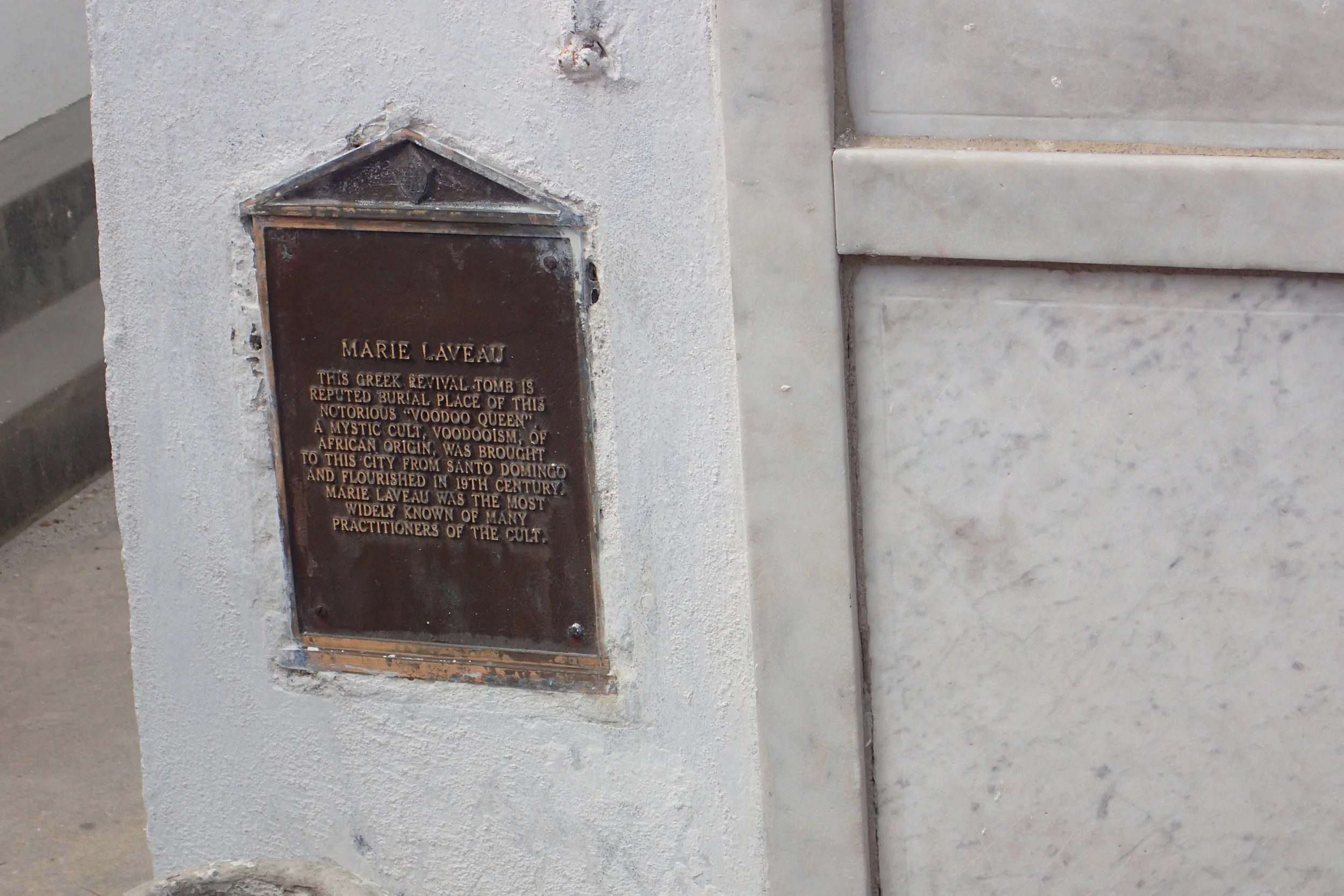 You're probably wondering what all the engraved X's are about. Laveau's actual and mistaken tomb have faced much vandalism over the years. For example, the tomb on the left was painted a bright pink a couple of years ago, prompting the closing of the cemetery to the public.