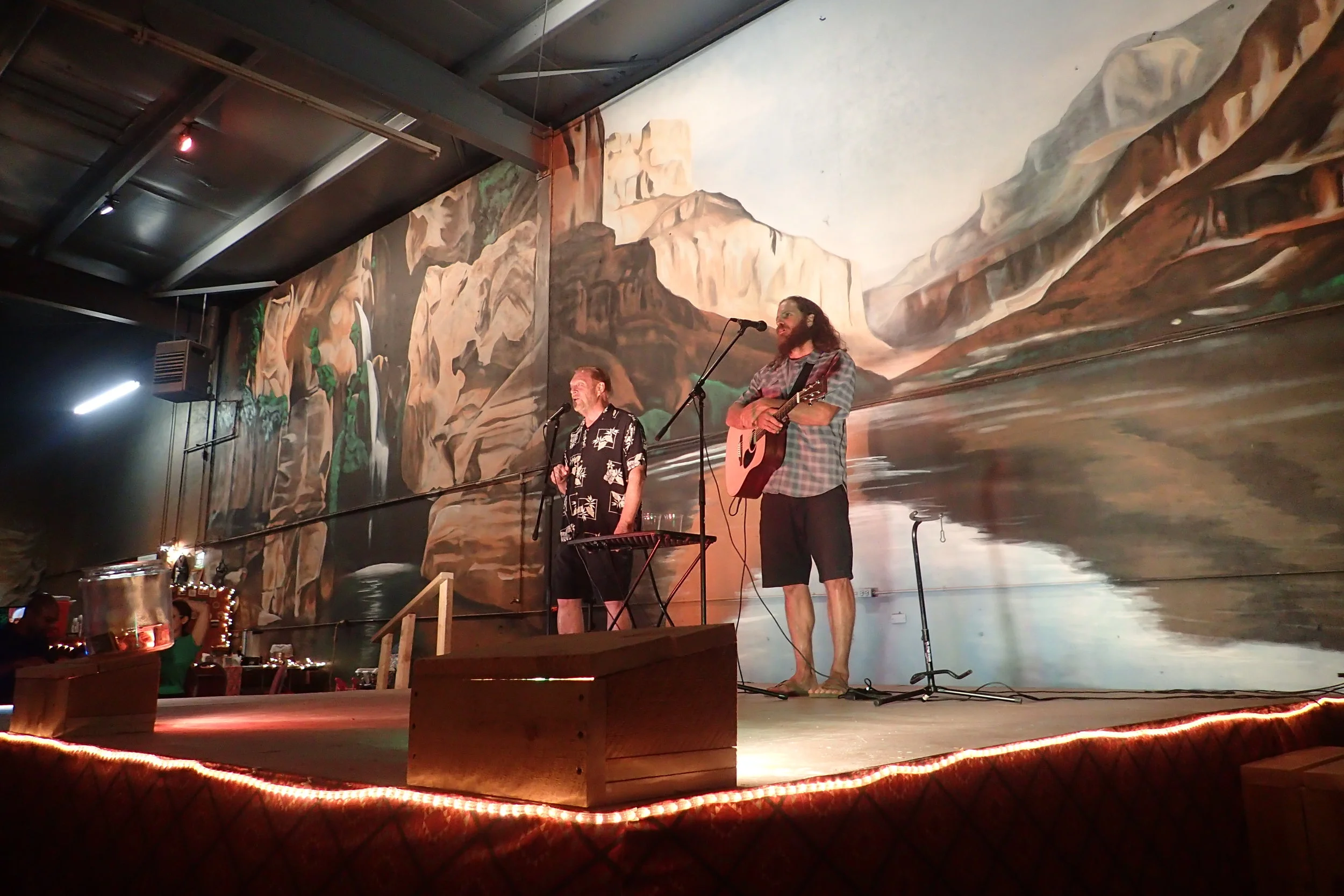 Hoss tells the story of Robert Sanderson who was among the first 100 people to raft through the Grand Canyon in 1947. The venue also serves as an exhibit for this history. Various rafts and large murals depicting Grand Canyon imagery decorate the warehouse space. This provides a wonderful, local atmosphere to the experience.