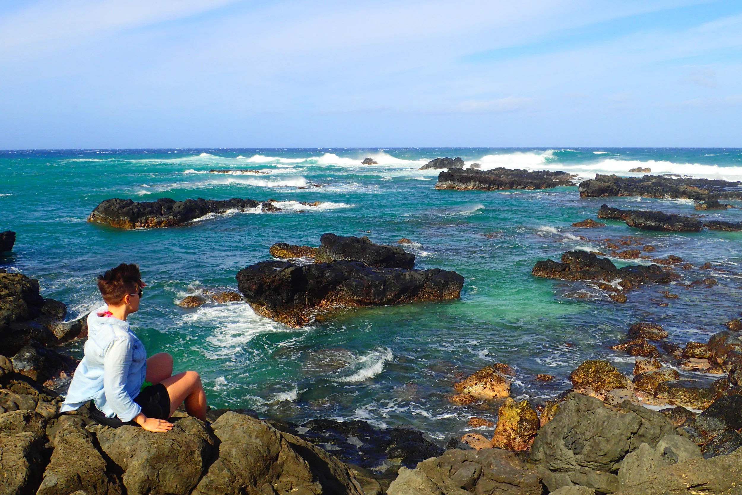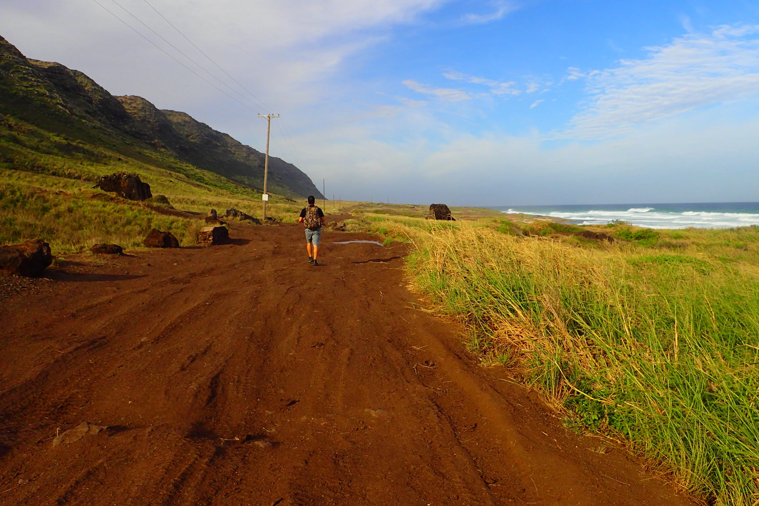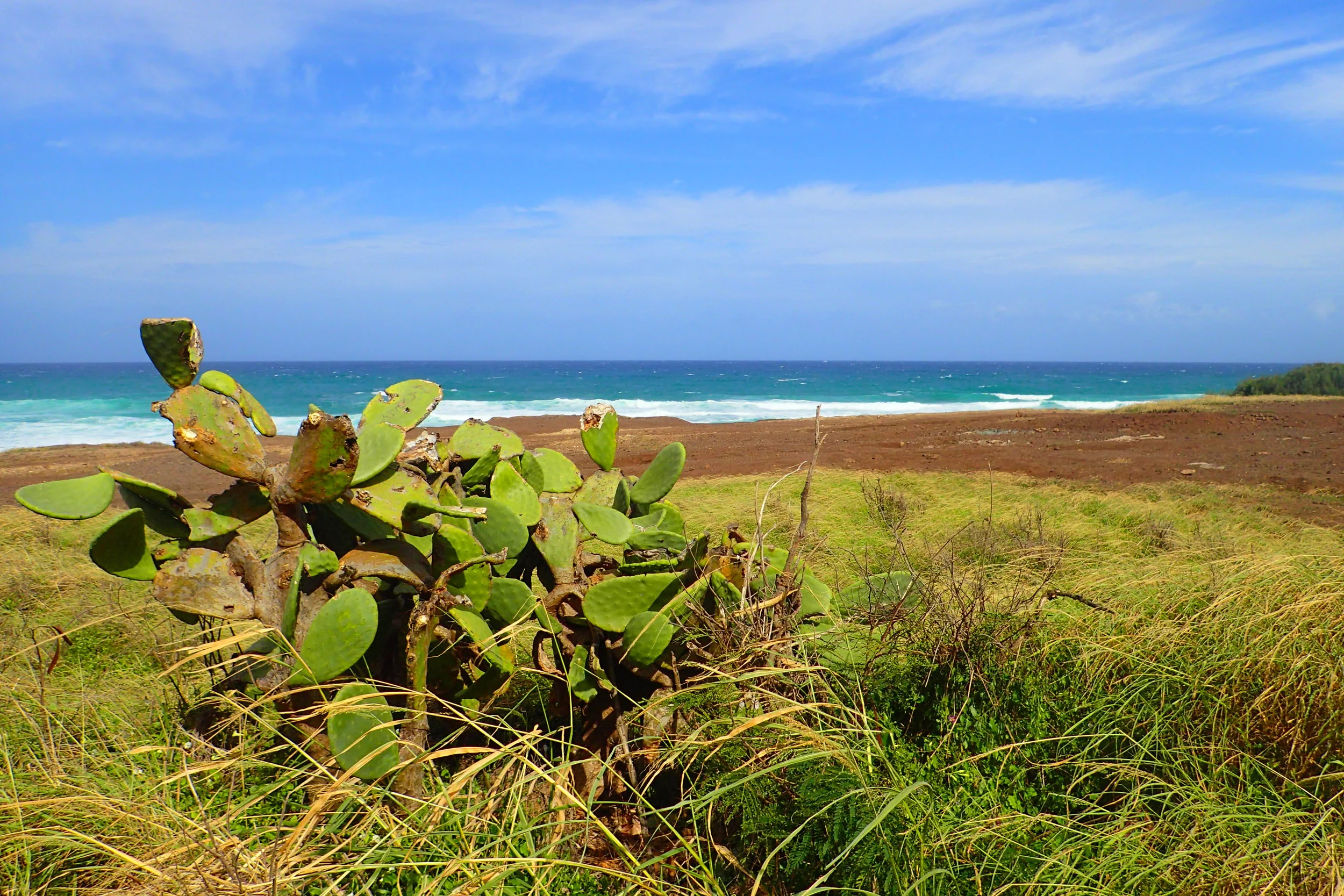 This was a long walk with great payoffs. Most of the hike is along a sun soaked dirt road with towering cliffs to the left and gorgeous beach views to the right. Lava rock formations and cactus plants spot the way.