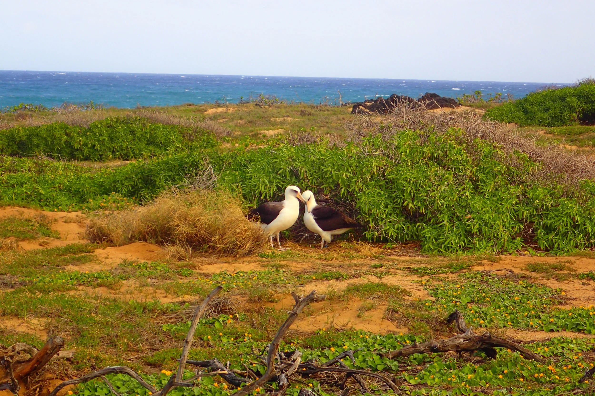Beyond the albatross is a beach and surf full of lava rock formations. Monk seals often hand out here, although they can be rather elusive. Since they are an endangered species, you must keep your distance at 150 feet. I looked at the beach and there were none to see, so I sauntered down the sandy slope to reach the water.