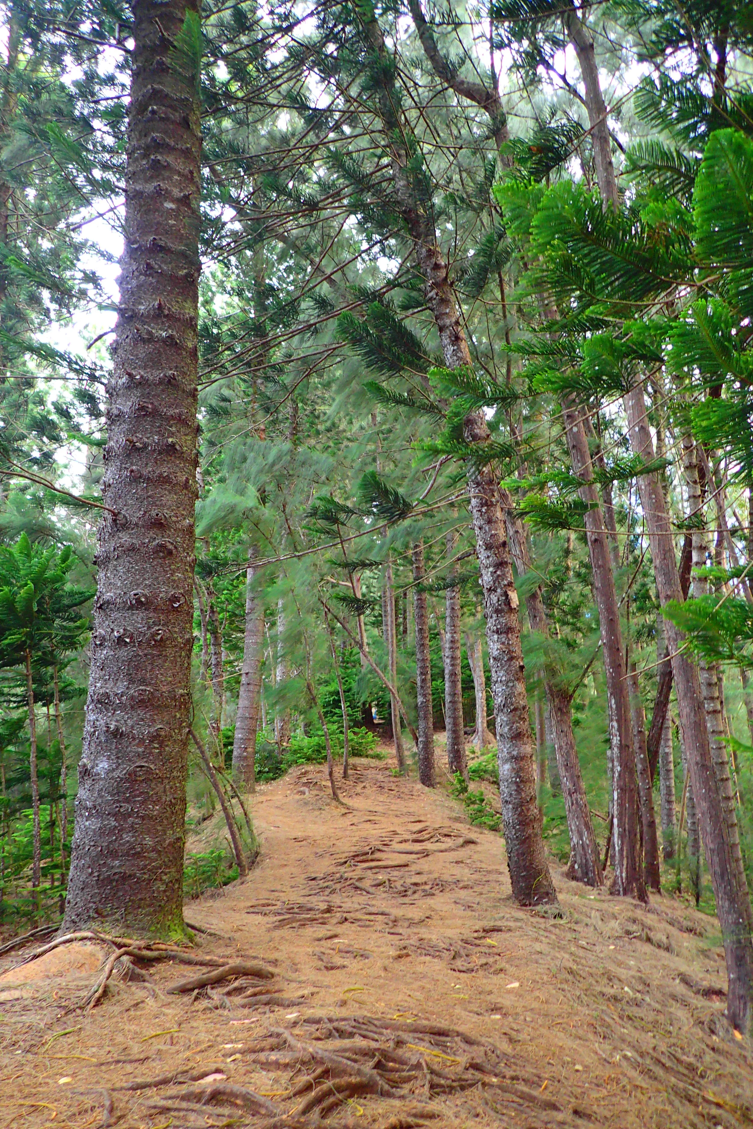 My favorite part of the walk up was encountering the Norfolk Island Pines. Growing up high overhead, the Norfolk Island pines are an awesome sight! They grow in rows along the trail with knots symmetrically spaced up their trunks. I had never seen trees like this before I went on this hike.