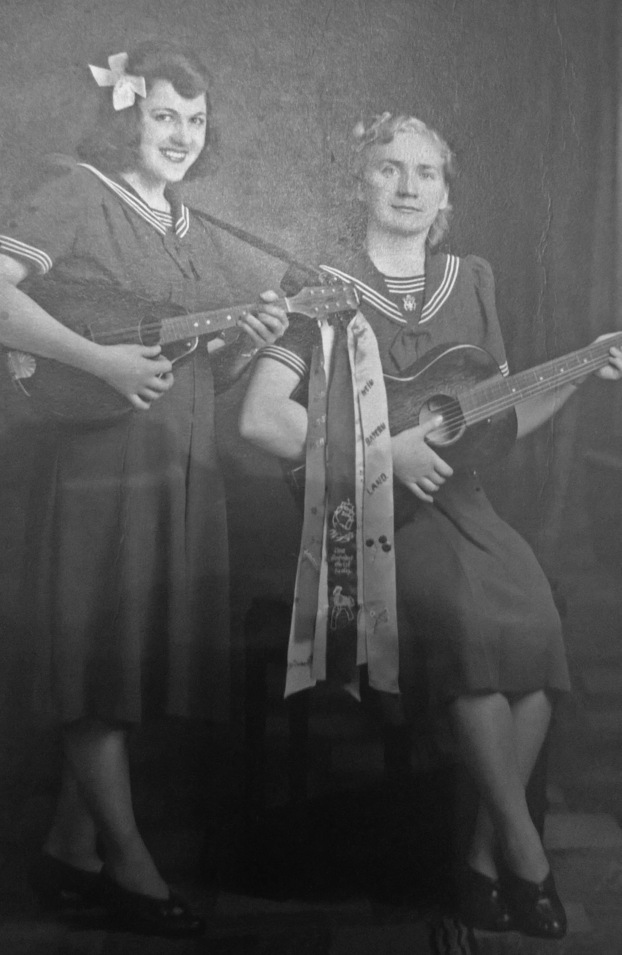 There's a photo of this somewhere that I will add to this post when I get it. Instead, I'll share the photo below of her (on the left) playing the mandolin. Wally was a part of a women's band in Flushing, Queens. Eventually, she got a job through an agency playing in Manhattan.