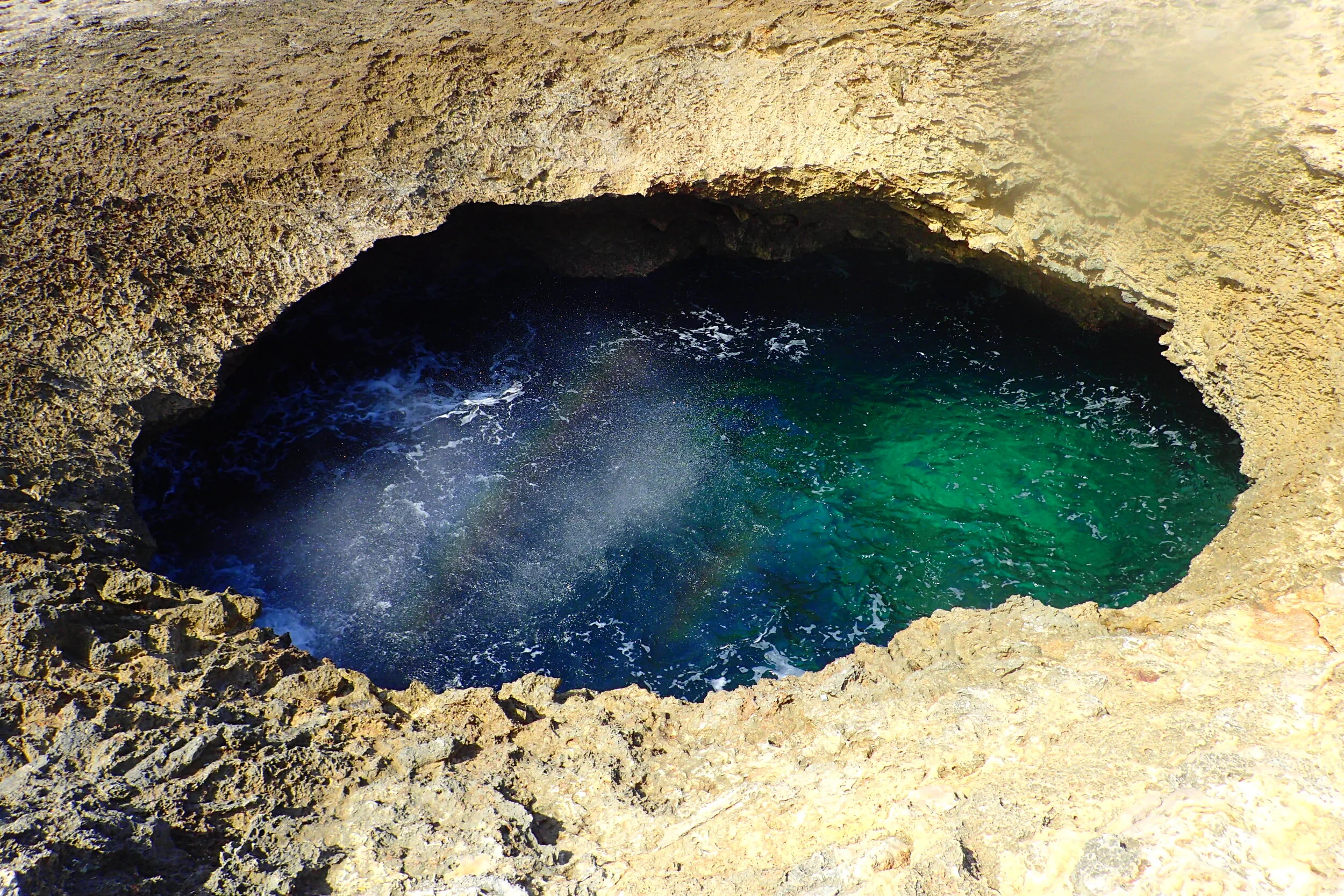 In papiamentu, Shete Boka means Seven Inlets. Shete Boka National Park has many coastal inlets where waves crash into shore, sometimes spraying upwards in dramatic plumes.