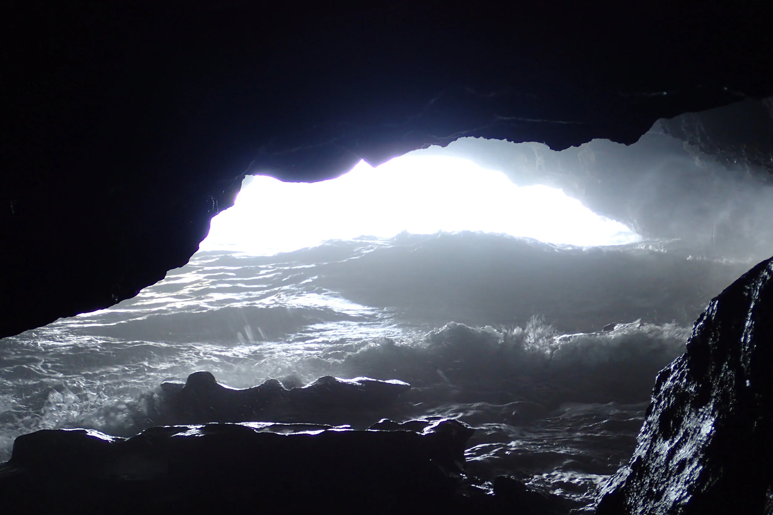 A bit further away from the hole, there is a flatter area where the waves come crashing onto shore. Sometimes they pull up through smaller holes in the ground and spray up. I spent some time here admiring their geyser-like behavior.