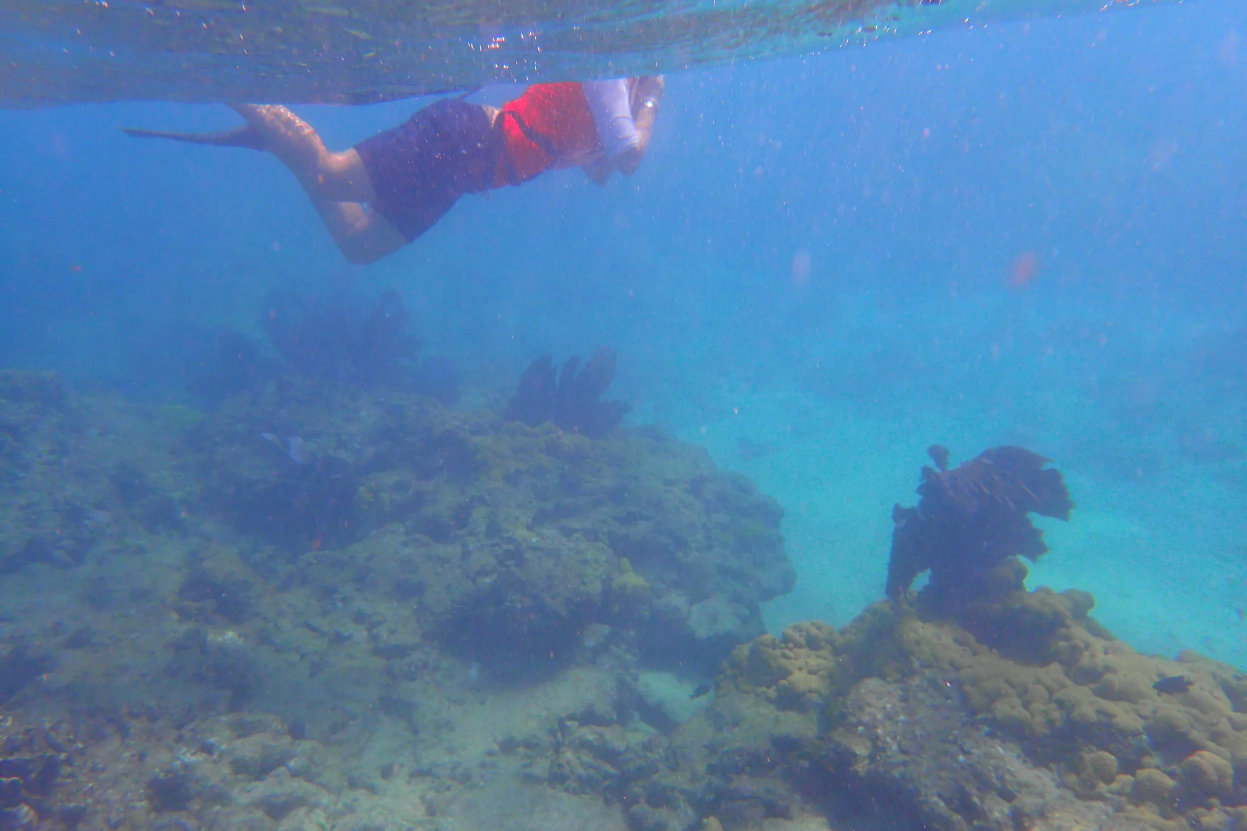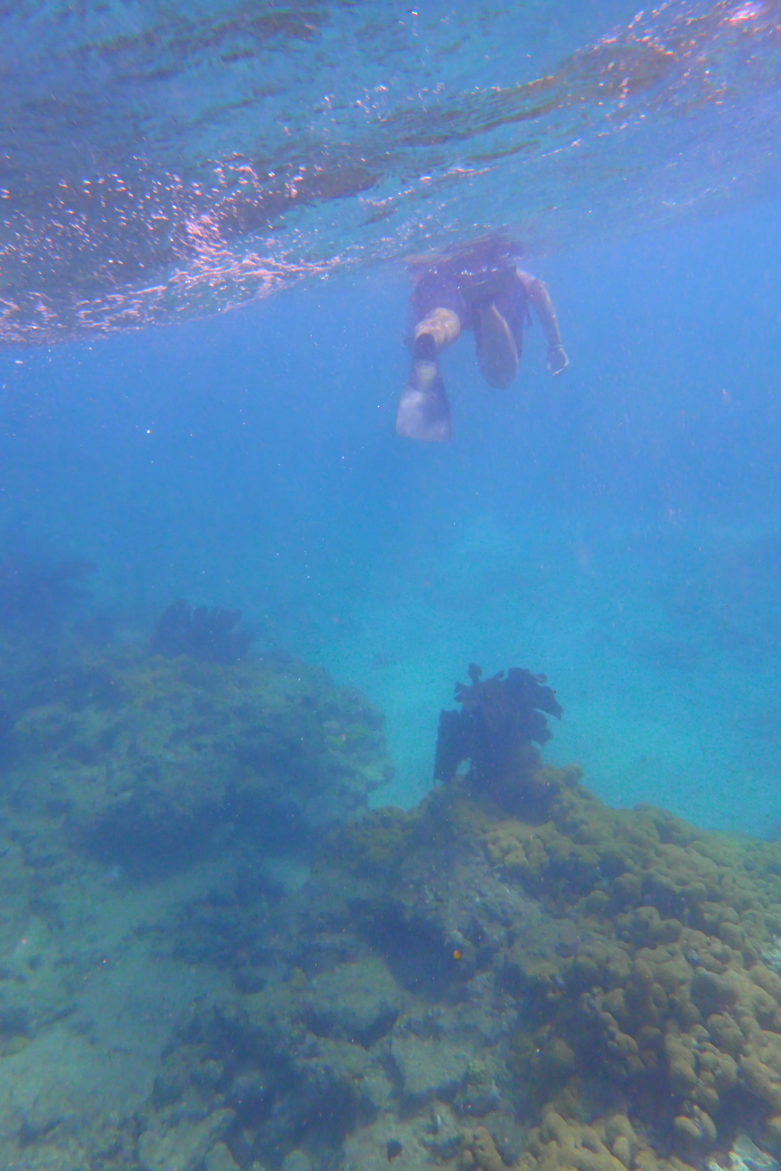 We also found a bit of marine life surrounding a big rock formation a short swim out from the beach. The water wasn't super clear at this beach but, in the sunlight, we could observe some nice reef fish around the rock.