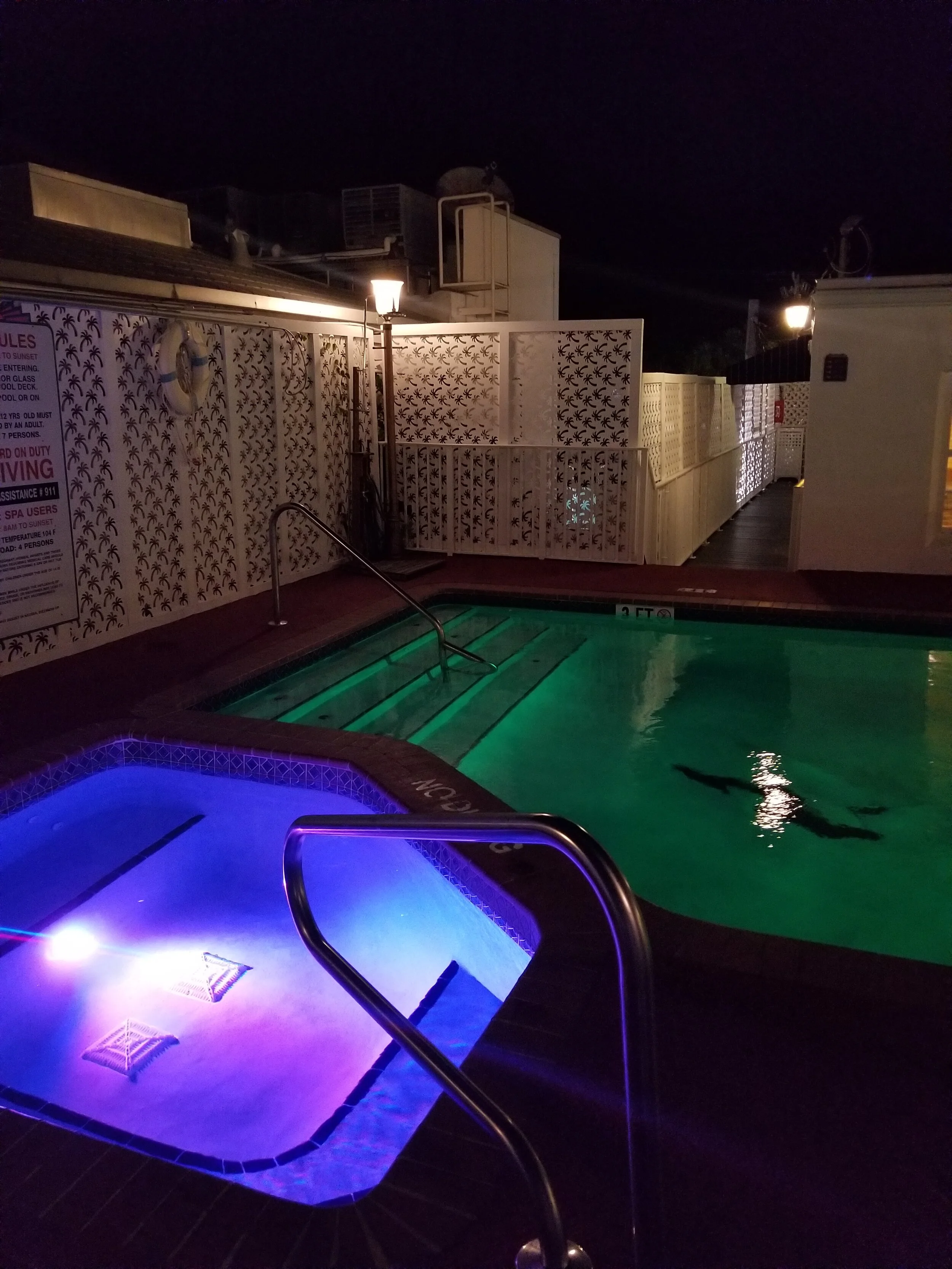 We stayed at Pegasus International Hotel for about $160 per night. We found it fit our needs perfectly—a comfortable bed and room with en suite bathroom, continental breakfast each morning, and common pool and lounge area overlooking Duval St.