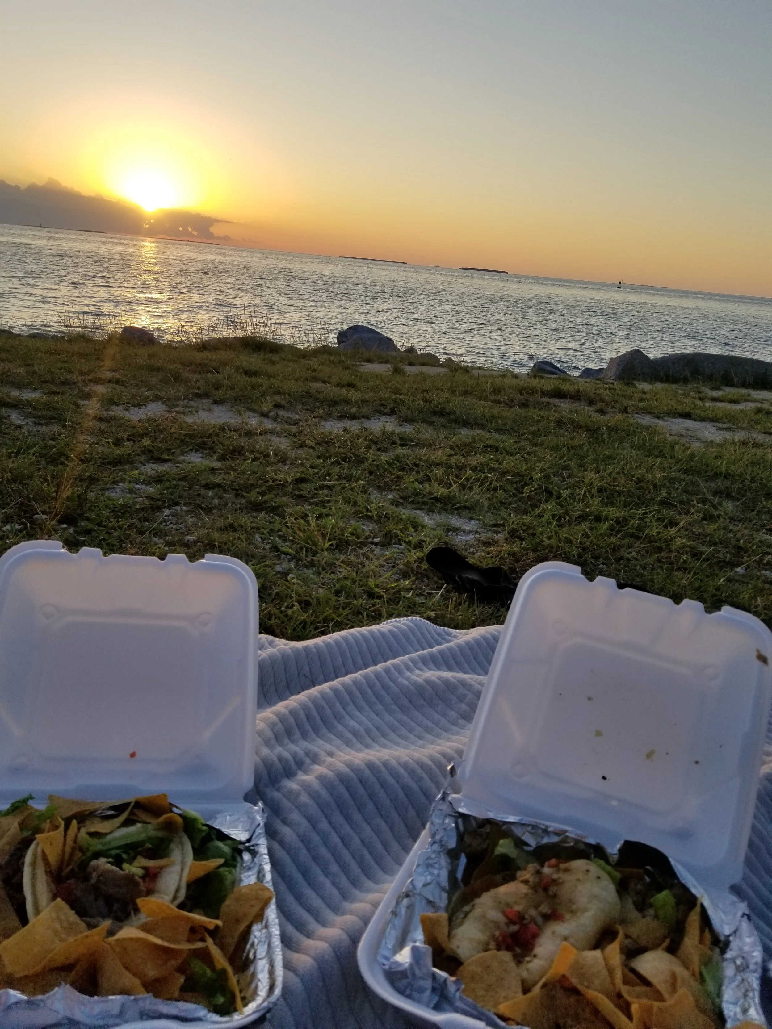 Ivana and I found some food and brought it to Fort Zachary Park. We had a little picnic and watched as the sun set with not too many other people around. We watched boats go by here and slapped the occasional mosquito off our arms.