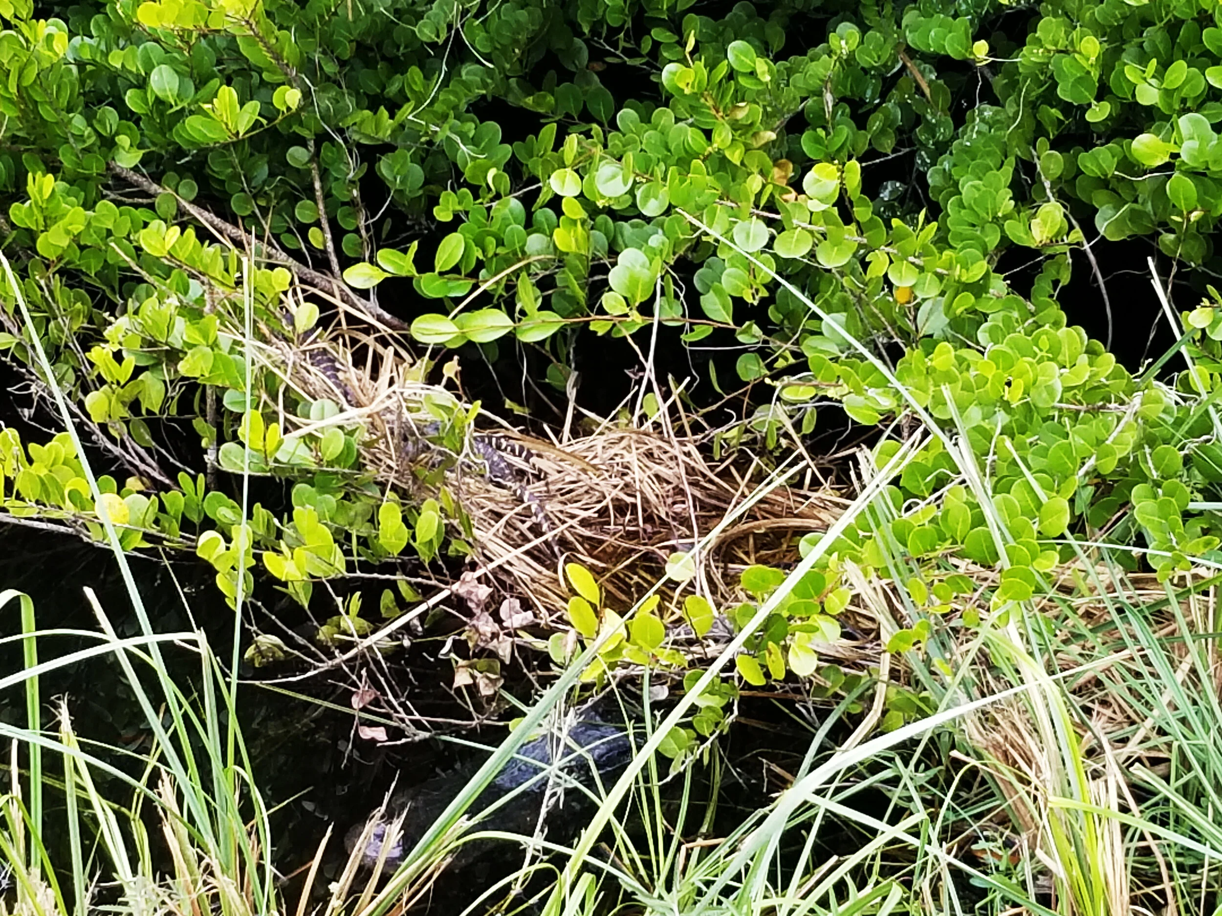 Between my two bicycle rides in early August, I saw 1 nest of babies (with the help of some rangers), one partially submerged alligator, and a dead alligator.