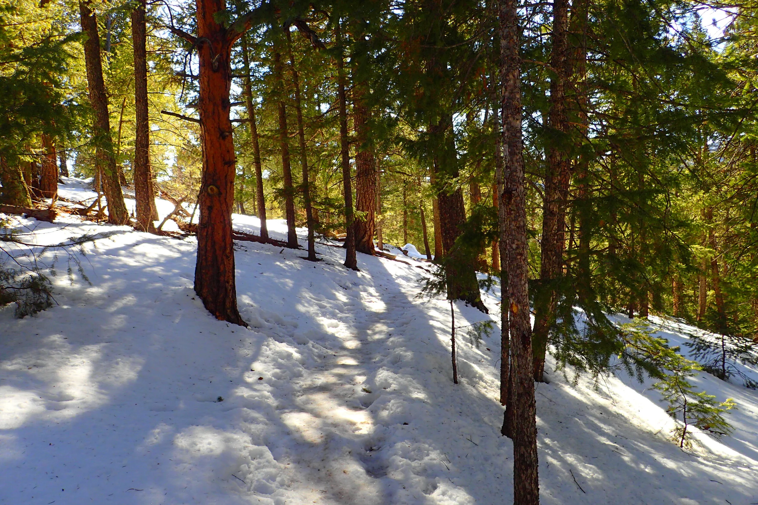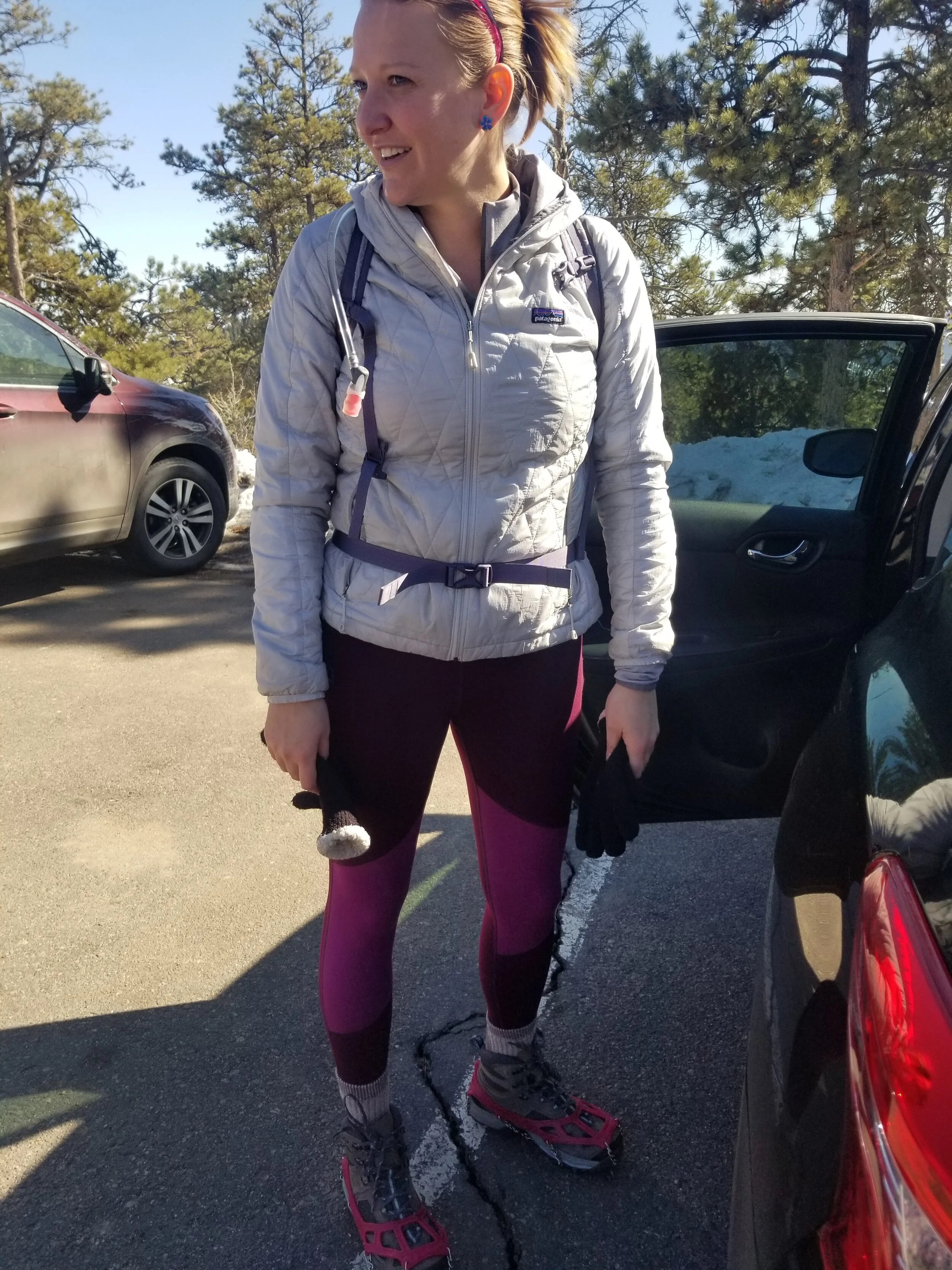 It was a gorgeous, sunny day. The trail was lightly packed with snow and I was grateful to have poles to balance each step. Dasha was rocking it with her microspikes. I found myself envious of Dasha's spikes—she's starting to get into all the cool, Denverian hiking gear!